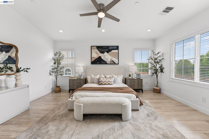 Refined Luxury Living in Dublin Ranch Golf Course Experience nearly 4,900 sq ft of refined living on a premium 9,300 sq ft corner lot in the prestigious Dublin Ranch Golf Course community. Fully renovated in 2022, this 6-bedroom, 4.5-bath executive home blends timeless style with modern comfort. A bright designer interior, porcelain tile flooring, and expansive windows create a light-filled ambiance throughout. The chef’s kitchen features stainless steel appliances, an oversized island, contemporary cabinetry, and seamless flow into spacious family and entertaining areas. A main-level guest suite offers flexibility for multi-generational living or a private office. Upstairs, generous bedrooms with custom closets provide everyday luxury. A rare highlight includes two dedicated wellness spaces—an upstairs loft and a fully equipped garage gym with mirrored walls and built-in storage. The low-maintenance backyard is ideal for entertaining and relaxation. Just steps from the HOA pool, tennis courts, and clubhouse, and minutes to top-rated schools, Fallon Sports Park, BART/580, and premier shopping. Luxury, space, and lifestyle, move-in ready.