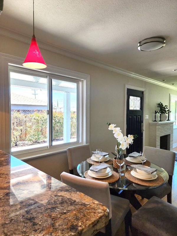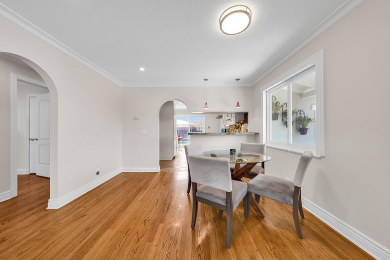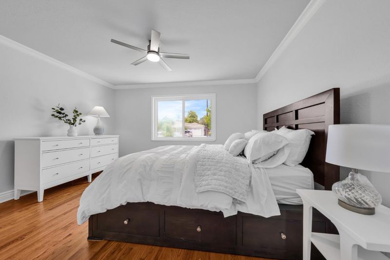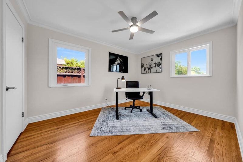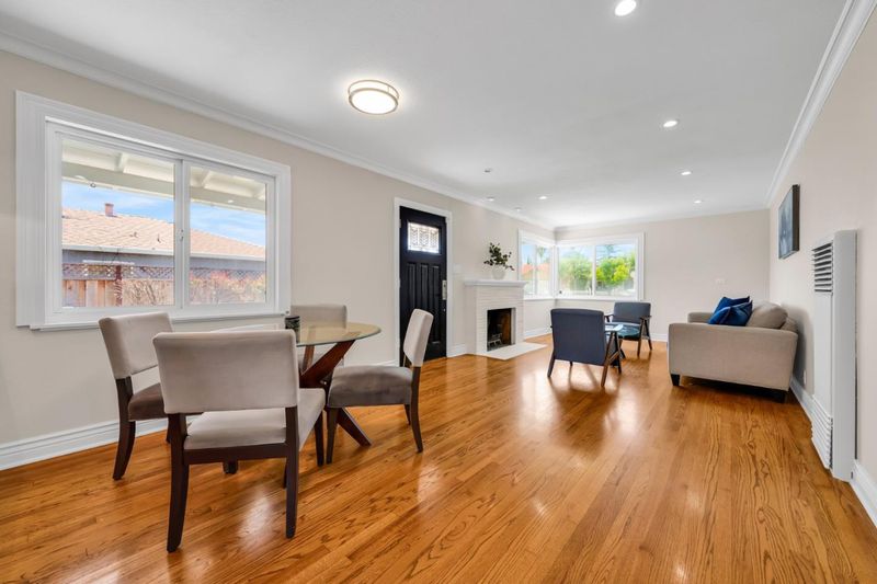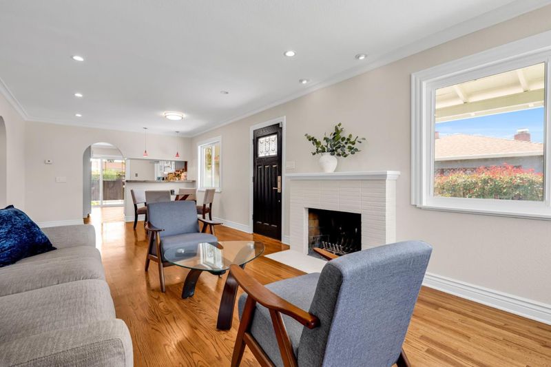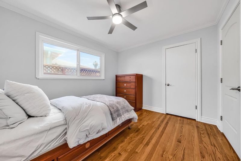 Welcome to this charming single-family ranch-style home. Freshly painted interior & exterior is move-in ready. Original oak hardwood floors throughout. Crown molding in living area and bedrooms. Modern touches include recessed ceiling LED pot lights. The kitchen shines with granite countertops & features brand-new gas stove, hood, and dishwasher. New ceiling fans in every bedroom. Two year new roof. Spacious 2-car garage plus a long driveway that fits 3 vehicles. Drywalled and insulated garage. Garage door opens with app. Clean and low maintenance front and back yards. The backyard patio features a slate and brick patio perfect for gathering outdoors and relaxing evenings. 8x15 storage shed, insulated & drywalled. Easy access to freeways & public transportation. Walk to Light Rail at end of the street. Close to downtown SJ, catch CalTrain at Diridon Station, to BART Station. Close to SAP Center, Levis Stadium, Tech, etc. Direct public transit to SJSU. This lovely home is a perfect blend of charm & value with new reduced excellent price point.