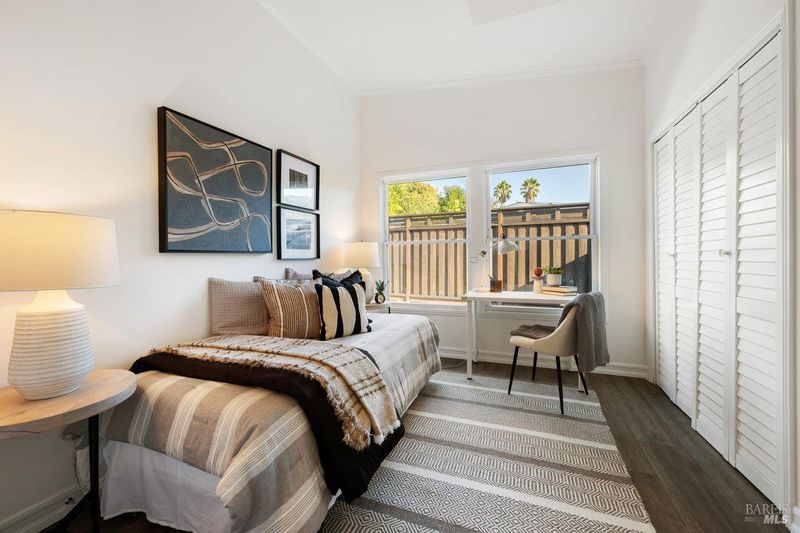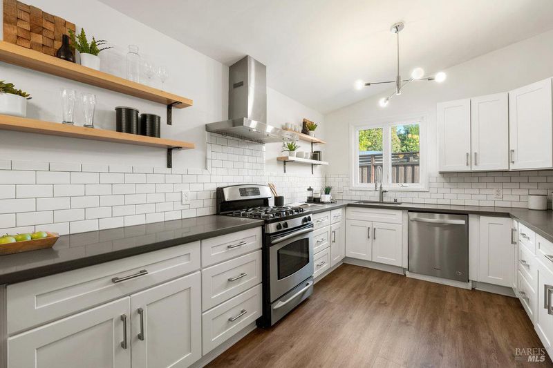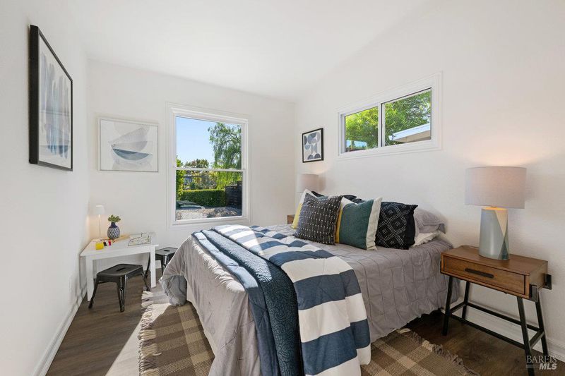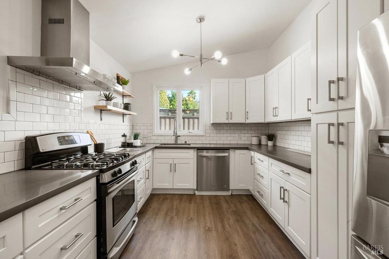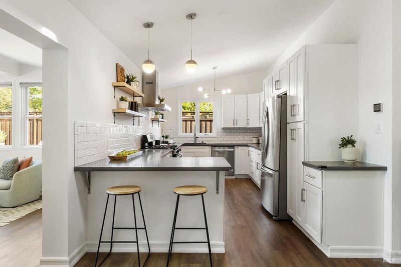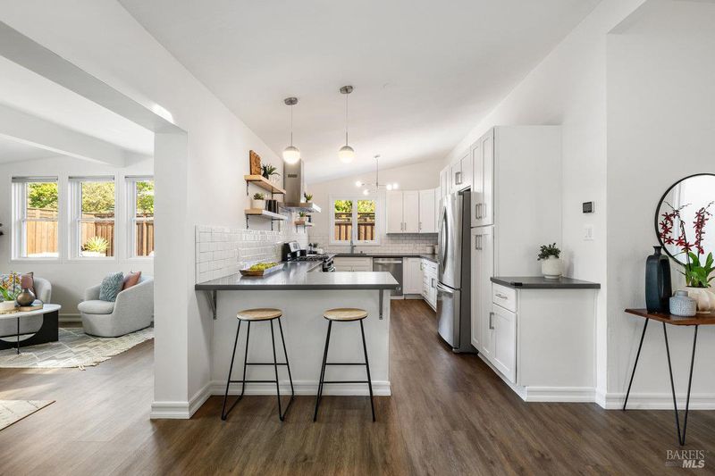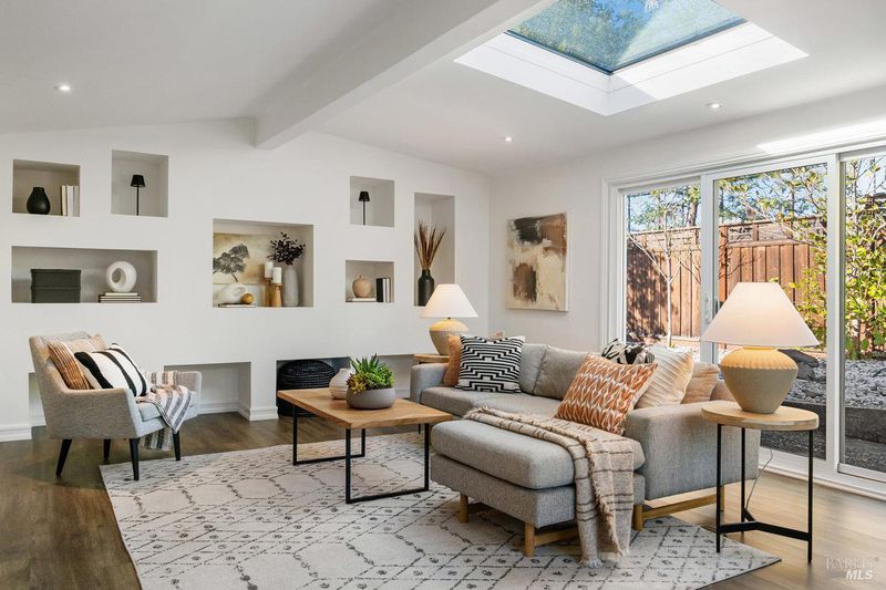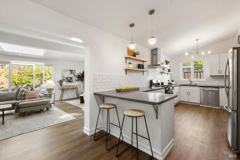 Discover and move right in to this turnkey, expanded and stylish single-level home in Santa Venetia. The thoughtfully renovated kitchen features abundant cabinetry, quartz countertops, and stainless steel appliances with a breakfast bar areaperfect for today's modern lifestyle. The home's open and spacious floor plan offers four bedrooms and two full bathrooms, providing more room than is typical for the neighborhood. Enjoy the light-filled living room addition with vaulted ceilings and a large skylight, creating an inviting space for relaxation and entertaining. Additional highlights include dual-pane windows throughout, luxury vinyl flooring, upgraded main and sub electrical panels, and a recently upgraded central furnace and A/C system. The laundry area has been conveniently relocated from the garage for added functionality into the fourth bedroom. Set on a generous lot, the property offers potential for future yard expansion while also featuring a newly hardscaped entertaining and play area with artificial turf for low-maintenance enjoyment. Ideally located next to local favorite Pueblo Park, this home combines comfort, convenience, and quality upgrades in a sought-after San Rafael location.