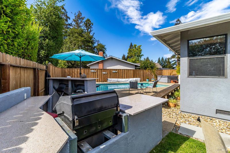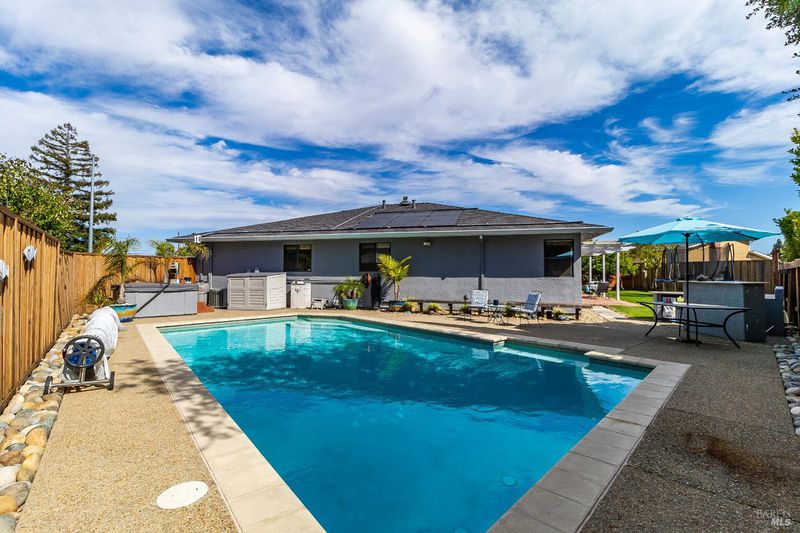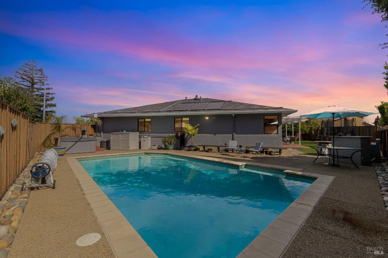 Welcome to this beautifully maintained single-story gem in a peaceful Martinez neighborhood. Offering 4 bedrooms, 2 bathrooms, and 1,631 sq ft of comfortable living space. Inside, enjoy hardwood floors throughout and tile in the kitchen and baths. The living area features a built-in home theatre system with recessed wall-mounted speakers, retractable screen, and surround sound, perfect for movie nights or entertaining. The surprisingly large kitchen offers granite countertops, ample cabinet space, and a cozy brick fireplace. The expansive primary suite includes a ceiling fan, a large closet, and a private bathroom with a jetted tub and tile. Step outside to your backyard oasis featuring a sparkling pool, separate Jacuzzi, and built-in BBQideal for relaxing or hosting. Owned solar panels and solar pool heating reduces energy costs. The low-maintenance front yard includes a charming mini deck, while the large side yard offers raised planter boxes and lush grass. Other highlights include: roof-mounted sun tube skylights, central AC/heat, a garage workshop area, and extra storage. This move-in-ready home blends charm with thoughtful upgrades!