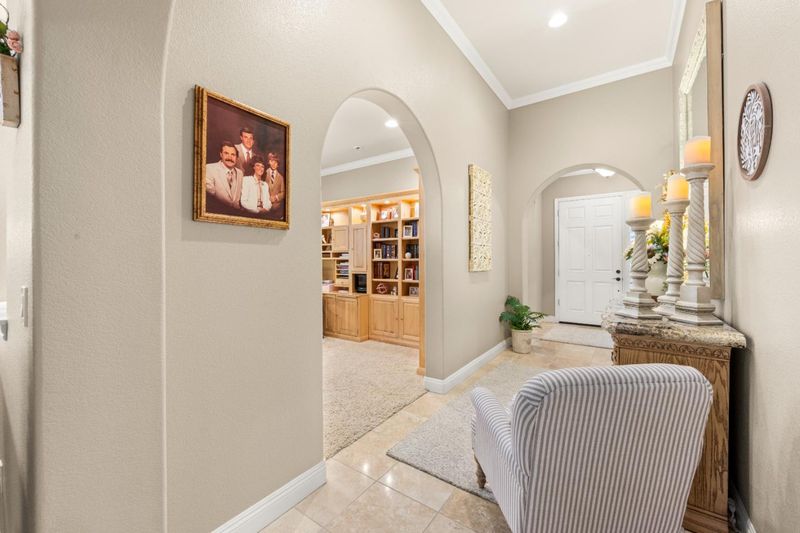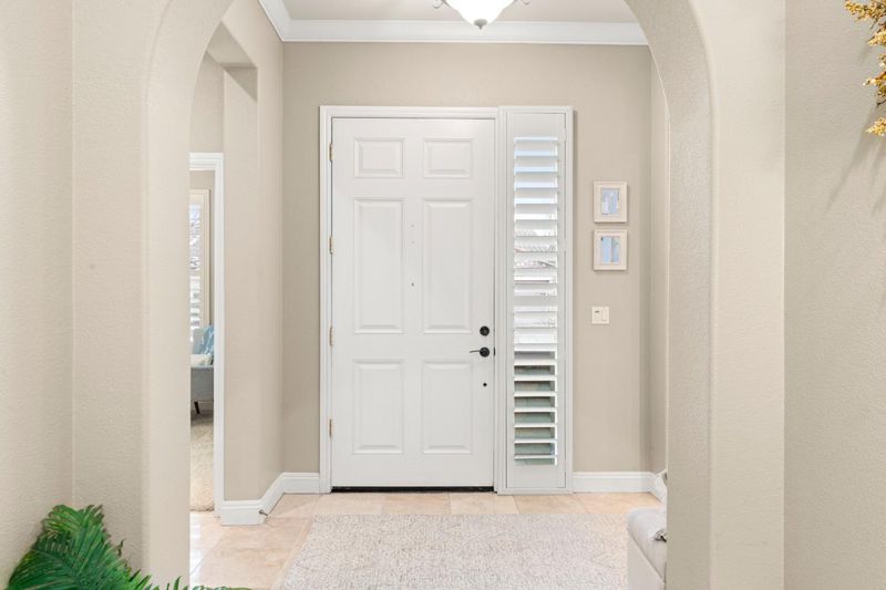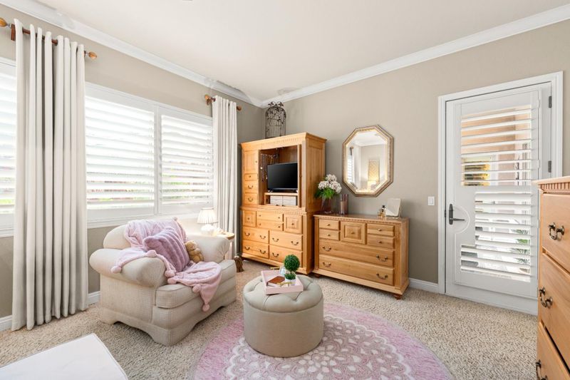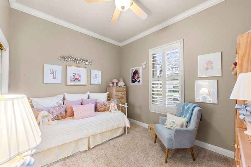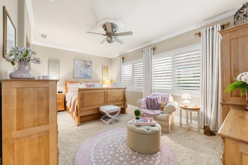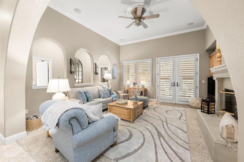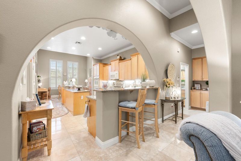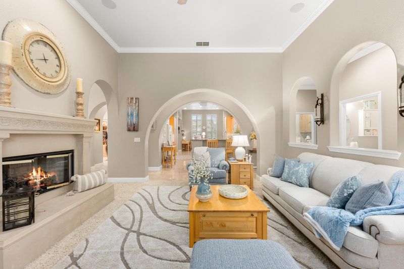 Set in the sought-after Heritage Park 55+ community, this Pacifica model welcomes you with a timeless stone-accent elevation, designer entry, and manicured landscaping that instantly feels done right. Inside, natural light pours through wide plantation shutters and tall windows, highlighting crown molding throughout, 4-inch baseboards, and elegant travertine flooring that carries the home with a clean, upscale finish. The heart of the home is the spacious kitchen, rich natural maple cabinetry, granite countertops, a large center island, and coordinated bisque appliances including double ovens. The layout flows into the comfortable family room with a cozy fireplace, while French doors off the family room, living room, and primary suite create seamless indoor-outdoor living. Step outside to a private, low-maintenance retreat featuring turf lawn, a tranquil waterfall and pond, a large equipment shed, and a built-in barbecue; ideal for relaxing afternoons and effortless hosting. A standout garage with epoxy flooring, full perimeter cabinetry, dual closets (including a cedar closet), plus a workbench with Formica countertop. A rare combination of quality, comfort, and thoughtful upgrades in one of Natomas premier active-adult communities.