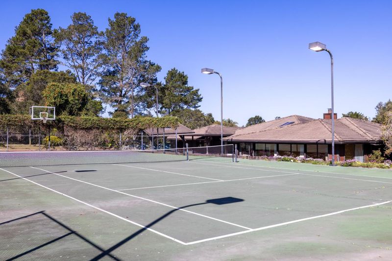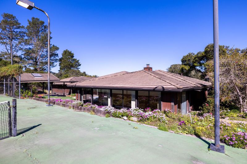 Architectural Mid-Century Retreat. Built in 1976 from clear, knotless redwood, this home showcases warmth and craftsmanship. Set on 1.15 acres in one of Monterey's most desirable and discreet neighborhoods, this 3,562 sq. ft. residence features expansive open-concept living and dining areas with stunning natural light. A grand foyer and striking central fireplace create an impressive space for both everyday living and entertaining. The generously sized primary suite includes a private sitting room, fireplace, two walk-in closets, and a jetted bathtub. Three additional bedrooms and two full bathrooms provide ample space for family and guests, and a large bonus room with separate entrance offers flexibility for remote work, home gym or other creative uses. Thoughtfully designed outdoor living - large patio with pizza oven, grill and bar area, a private lighted tennis court and basketball hoop, fruit trees and vegetable garden with ideal Monterey sun and climate exposure. Additional features of this property include wine cellar, laundry room, a three-car garage, and unique driveway access to the backyard on both sides of the house. Within minutes to town, golf, and airport. This truly is a special property. A home designed for gathering, celebration, and creating lifelong memories.