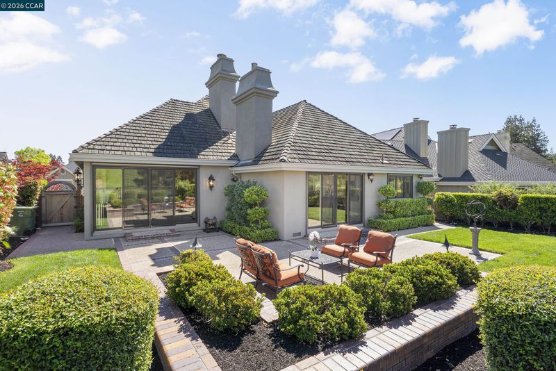 Beautifully remodeled move in ready home offers single-level living with refined finishes throughout. 3 beds plus a versatile loft and 2.5 baths. Newly remodeled kitchen impresses with custom cabinetry, stone countertops, premium Thermador appliances & an expansive island. The open-concept layout seamlessly connects the kitchen, dining & living areas, creating a bright & inviting atmosphere. Primary suite is a true retreat with vaulted ceilings, a spacious walk-in closet plus an additional closet & a spa-inspired bathroom. The private loft provides flexible space ideal for a home office, bonus room, or fitness area. Additional highlights include: Multiple oversized sliding glass doors for indoor-outdoor living, custom millwork, vaulted ceilings, hardwood floors, newer carpet, designer chandeliers, finished garage. Courtyard with soothing fountain. Private backyard with panoramic views of the open space. Community pool and tennis courts. Hiking trails close by! This home is a must see!