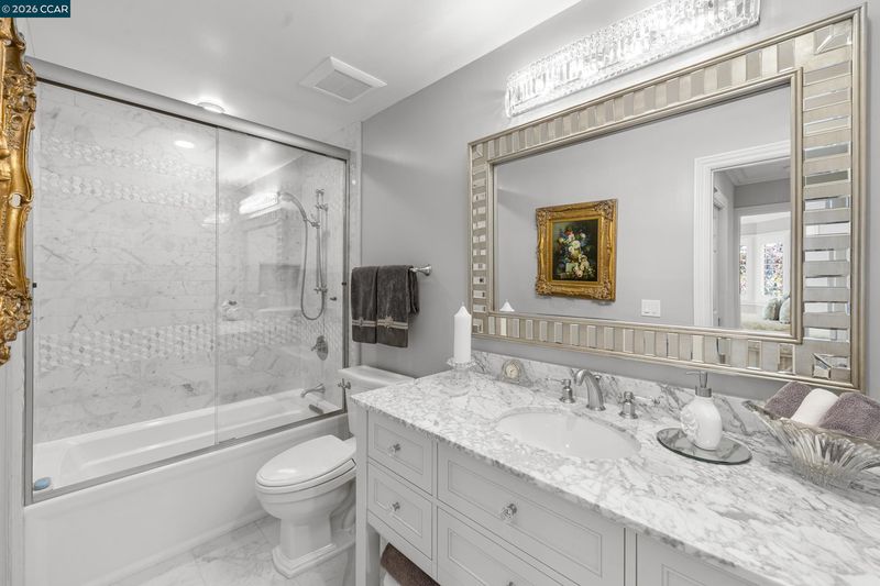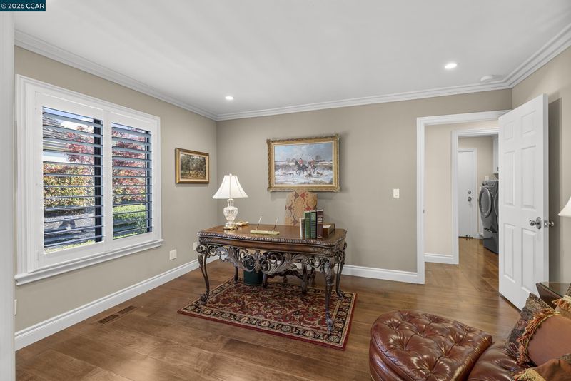 Beautifully remodeled move in ready home offers single-level living with refined finishes throughout. Featuring 3 beds plus a versatile loft and 2.5 baths, the home blends comfort with modern sophistication. The 3rd bedroom is currently an office & could be easily converted to a bedroom. The newly remodeled kitchen impresses with custom cabinetry, stone countertops, premium Thermador appliances & an expansive island. The open-concept layout seamlessly connects the kitchen, dining & living areas, creating a bright & inviting atmosphere. The primary suite is a true retreat with vaulted ceilings, a spacious walk-in closet plus an additional closet, and a spa-inspired bathroom with custom cabinetry, stone countertops & designer lighting. The private loft provides flexible space ideal for a home office, bonus room, or fitness area. Additional highlights include: Multiple oversized sliding glass doors for indoor-outdoor living, custom millwork, vaulted ceilings, hardwood floors, newer carpet, designer chandeliers, plantation shutters & a finished garage with epoxy floors. Outside is a charming courtyard with a soothing fountain. The private backyard oasis features panoramic views of the open space. Community amenities include pool & tennis court. House is 2415 sqft, Loft is 364 sqft.