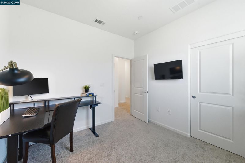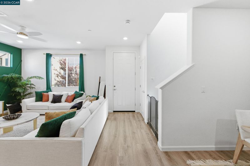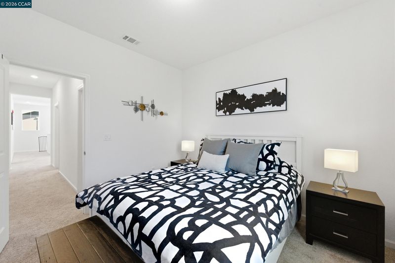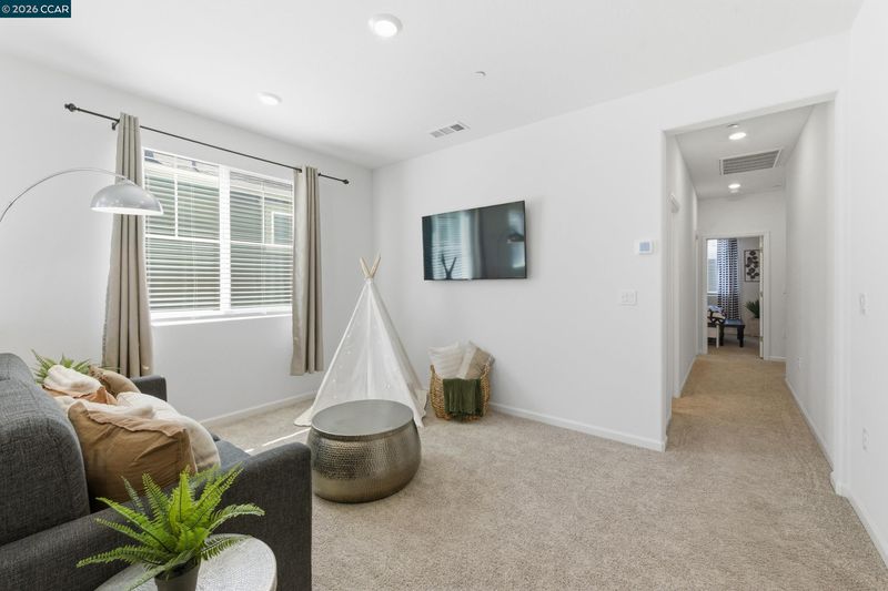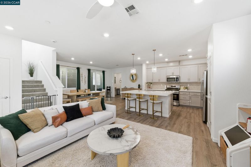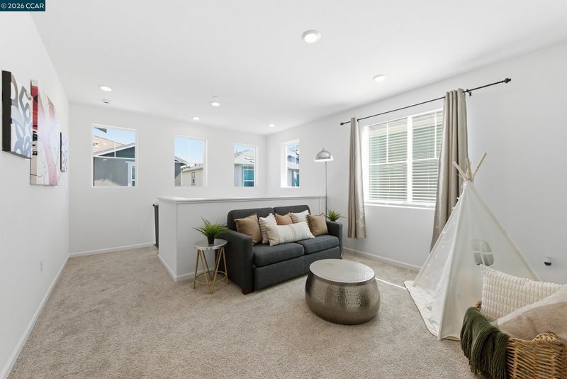 Welcome to Retreat at Vista Del Mar, where modern comfort meets effortless living. This beautifully designed 4-bedroom, 2.5-bath home features a versatile loft and a desirable alley-loading garage. The main level offers a bright, open-concept layout ideal for both everyday living and entertaining. The spacious great room flows seamlessly into a stunning kitchen complete with a large working island, light grey cabinetry, quartz countertops, and a full-height backsplash. The dining area opens to a private side courtyard through sliding glass doors—perfect for indoor-outdoor living. Upstairs, a flexible loft creates the ideal space for a media room, home office, or play area, thoughtfully separating the owner’s suite from the secondary bedrooms. The serene primary retreat features dual vanities, a walk-in shower, and a generous walk-in closet. Three additional bedrooms, a shared bath, and a convenient upstairs laundry room complete the second floor. Ideally located near Bay Point BART, Oak Hills Shopping Center, and with easy access to Highway 4 and I-680, this home offers both comfort and convenience in a well-connected community.