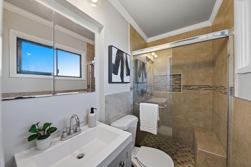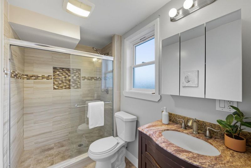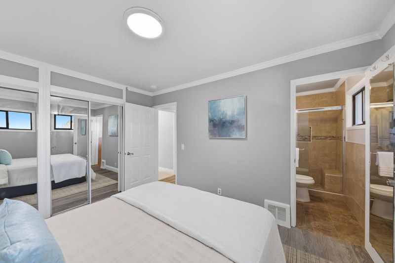 Situated on an oversized corner lot in the desirable Rollingwood neighborhood, this beautifully updated home offers the perfect blend of space, style, & versatility. The expansive front yard sets the tone, showcasing spectacular panoramic views & incredible curb appeal. Inside, thoughtful design & modern updates/remodeling create a warm atmosphere. The open-concept kitchen & living room area flow seamlessly together, ideal for both hosting & everyday living. The updated kitchen features high-end appliances, a dining area, & sleek finishes. Upstairs, you'll also find 3 comfortable bedrooms & 2 pristine bathrooms, including a luxurious primary suite w/ its own private bath. Other highlights include recessed lighting, storage cabinets, large windows, a remodeled garage, & tasteful flooring. The newer lower level offers exceptional flexibility, serving as a separate living quarter complete with its own updated full kitchen, bedroom, bathroom, & private entrance, perfect for multi-generational living or potential rental income. Enjoy a spacious backyard plus convenient access to Highway 280 for an easy commute between Silicon Valley & San Francisco. Families will appreciate proximity to top-rated schools, as well as downtown San Bruno's popular shops & restaurants just minutes away.
