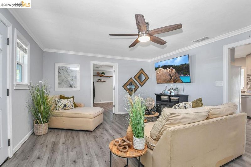 Country living on a full acre in Oakley with the space and flexibility you’ve been looking for. This single-story home features 4 bedrooms and 2 baths with a bright, airy feel and an inviting layout that lives comfortably. Thoughtfully updated throughout with laminate flooring, designer lighting, and dual pane windows that fill the home with natural light. The kitchen has been refreshed with slab quartz counters and modern appliances, opening to the main living areas for easy, connected living. The primary suite offers a large walk-in closet, and the bathrooms feature dual sinks and clean, updated finishes. Owned solar adds efficiency and long-term value. A detached in-law unit includes its own bedroom, full bath, and kitchenette—ideal for extended living, guests, or flexible use. At the rear of the property is a separate 2-stall barn, with plenty of room for animals, RV or boat parking, work trucks, or creating your own outdoor space. A true blank canvas—imagine landscaping, a pool, entertaining areas, and more. Enjoy nearby Delta waterways, scenic walking and riding trails, and the outdoor lifestyle Oakley is known for, all while being part of a growing community with exciting improvements planned for this area.