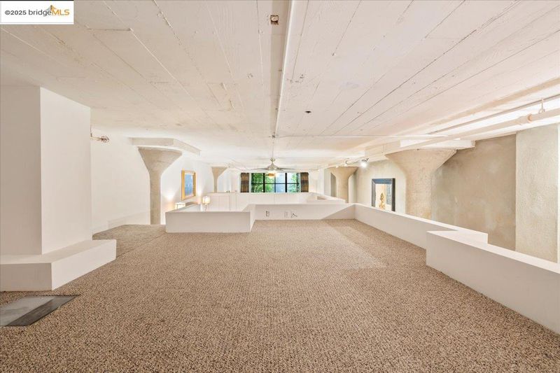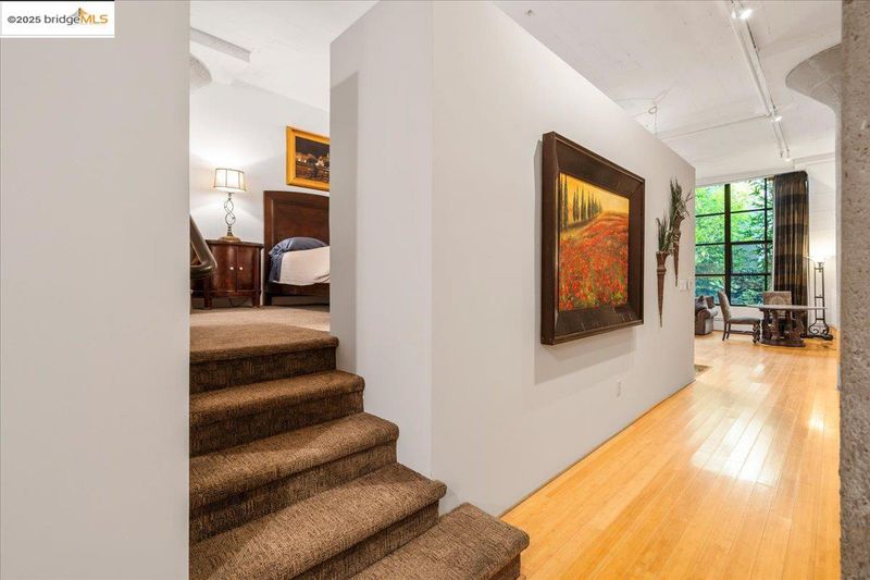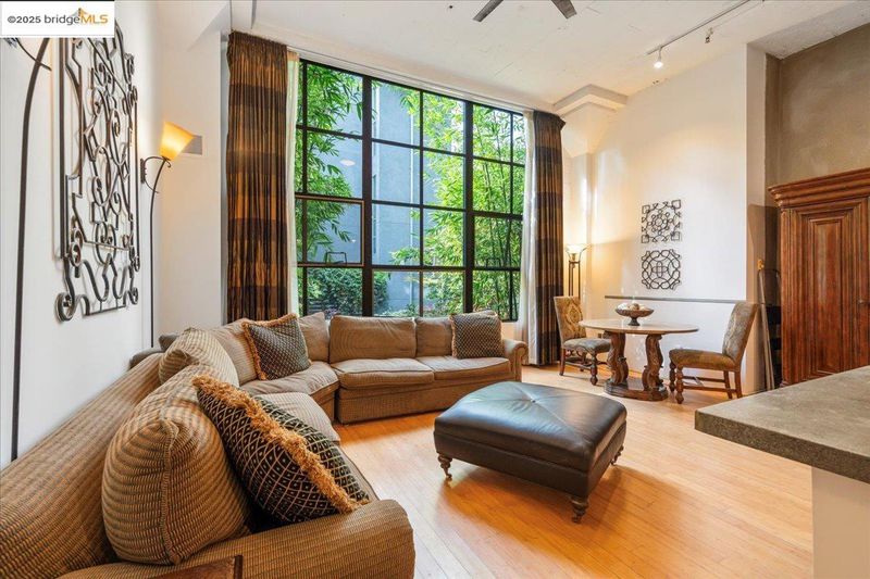 Welcome to the iconic 1500 Park Avenue Lofts, Emeryville’s premier warehouse conversion where industrial charm and modern sophistication meet. This stunning 1-bedroom, 1-bath ground floor (no steps to entry) loft blends soaring ceilings, exposed concrete, and expansive windows with warm natural light and sleek contemporary finishes. The open floor plan is ideal for entertaining, featuring a chef’s kitchen, spacious living area, and a dramatic mezzanine suite overlooking the main level. Designed for flexible living or creative work, this home offers both functionality and style. Enjoy two full bathrooms, in-unit laundry, and secure garage parking. The building features a serene landscaped courtyard with a waterfall wall, rooftop deck with city views, intercom entry, and elevator access. Perfectly situated in the heart of Emeryville near Bay Street shops, cafes, and entertainment. Minutes to BART, the Emery Go-Round shuttle, Pixar, and freeway access to San Francisco and Berkeley. Vibrant urban living at its best!