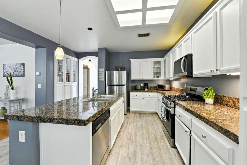 - Countertop - Granite, Dishwasher, Exhaust Fan, Garbage Disposal, Island with Sink, Microwave, Oven Range - Gas, Refrigerator