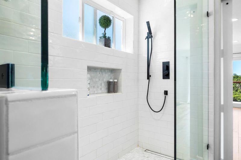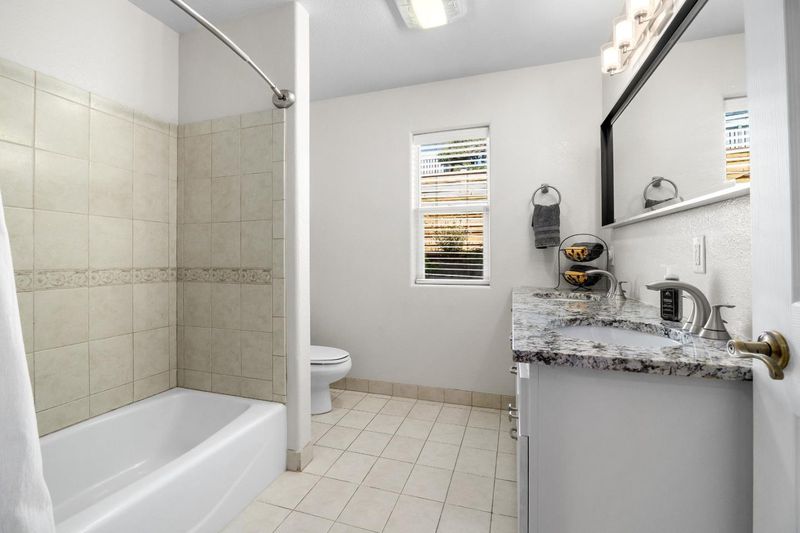 - Double Sinks, Shower and Tub, Stall Shower, Stone, Tile, Tub, Updated Bath