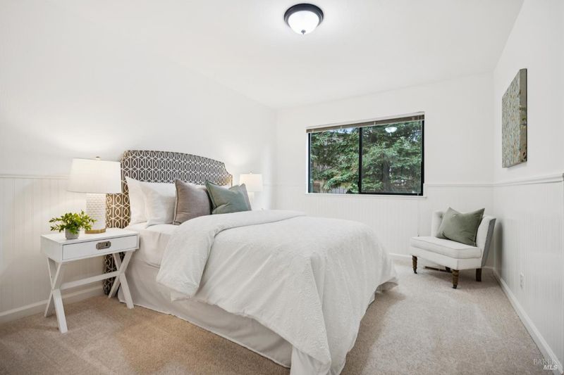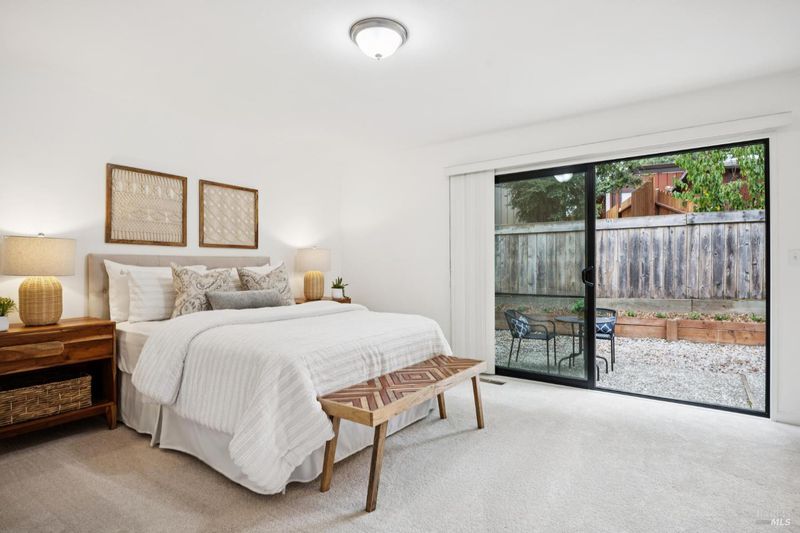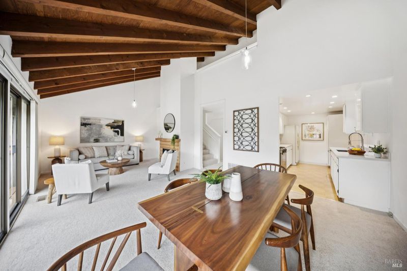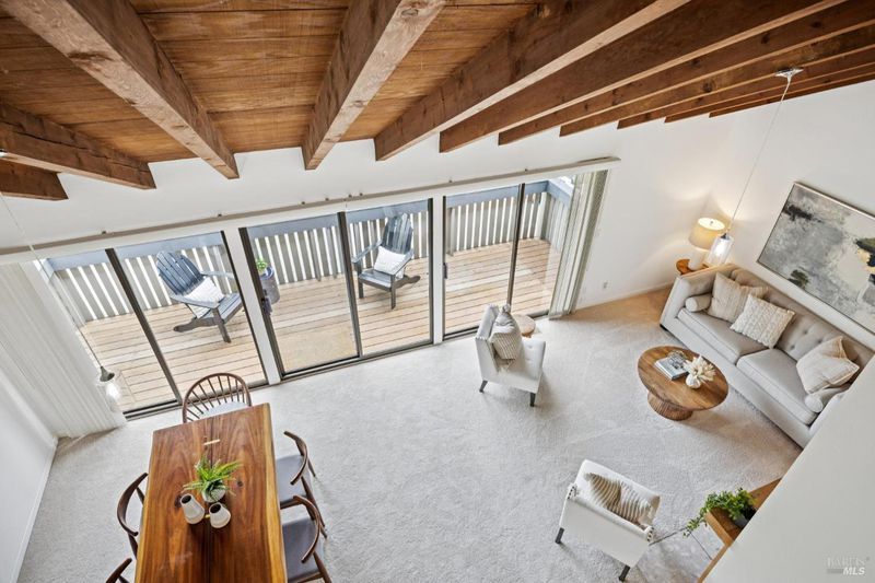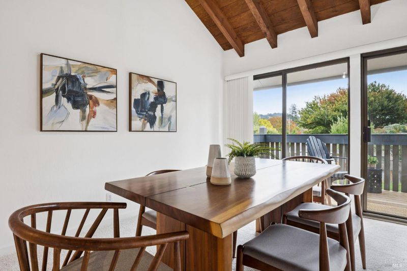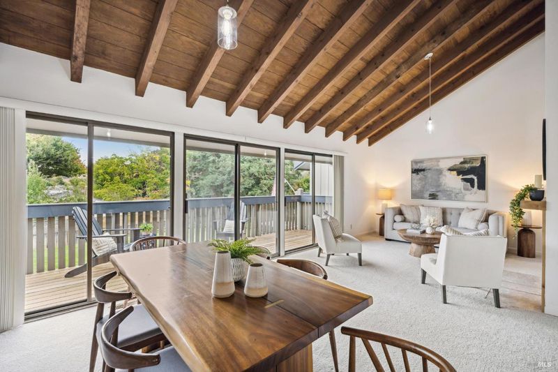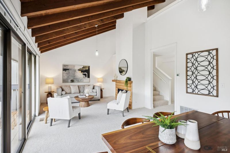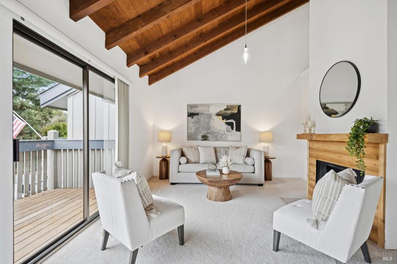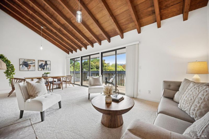 The wait is over! This rarely available 3 bedroom, 2 bathroom townhouse, offering nearly 1,600 square feet of living space plus a large outdoor patio space will check every box and more! One of only 3 units in the sought-after Miller Creek community that sits on its own little lane with guest parking and a huge front lawn area that is maintained by the HOA. With soaring, vaulted, exposed-beam ceilings plus views of majestic trees in the back, you can enjoy Tahoe vibes right here in the 94903! A wall of sliding glass doors adorn the living and dining areas, leading to a large front balcony and ushering in loads of natural sunlight. Fresh paint throughout, new carpeting, and beautiful new quartz kitchen counters make this home ready for immediate move-in! An attached garage with interior access & additional storage are added bonuses of this special property. The Miller Creek community offers a lovely pool area, tennis courts, beautiful walking paths and a children's playpark on-site. Great location, just around the corner from the popular Marinwood Market & minutes from the Marinwood Community Center with pool, waterslides & parks. Low HOA dues & the award-winning Miller Creek School District round out this amazing opportunity to make 64 Blackstone Drive your new home-sweet-home!