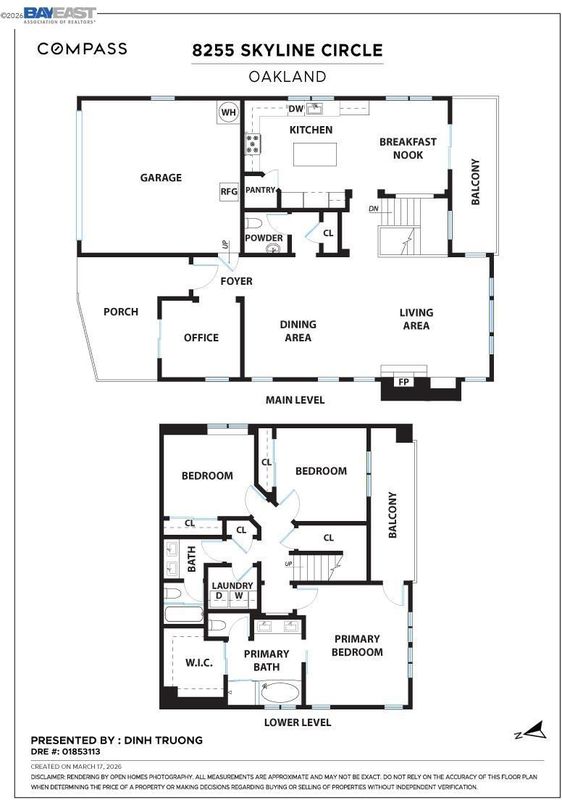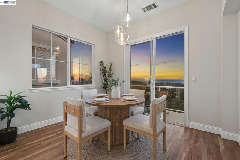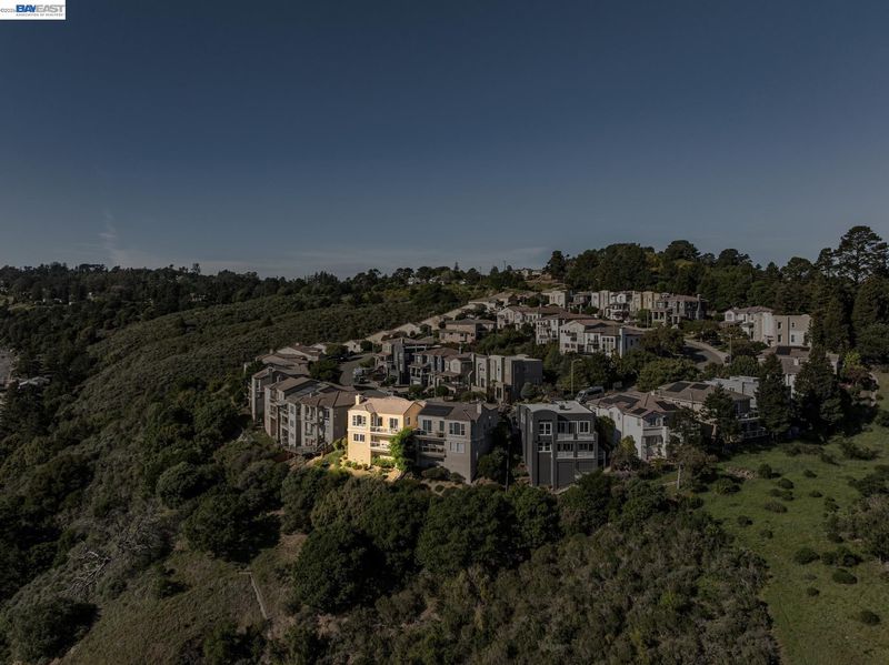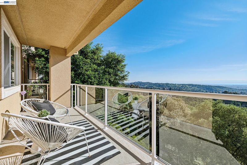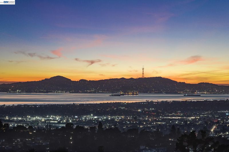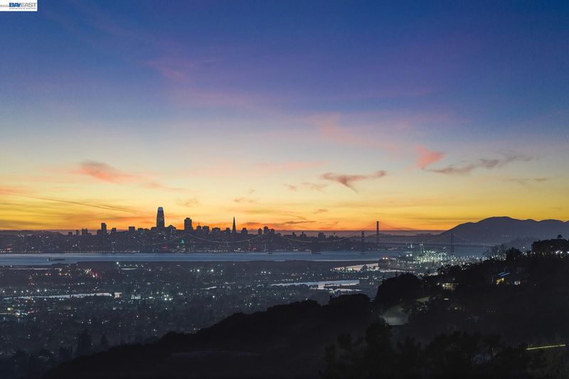 Breathtaking panoramic views of San Francisco Skyline/East Bay with golden hour kisses awaits you at 8255 Skyline Circle-2,054 sqft custom built contemporary abode offers an unparalleled living experience nestled in the prestigious Bay View gated community of the Oakland Hills. This 3 BR, 2.5 BA home boasts an extra versatile room on entry level, front patio, fresh paint and large windows allowing natural light to flood the interior. Refinished hardwood floors, recessed lighting, central heat/air conditioning, a gas fireplace and endless 3 bridges views-to fall in love with.The heart of this home is the expansive main floor featuring a living room flowing into the dining room decorated with an electrical fireplace to cozy up to. An updated chef’s kitchen with an island opens into a breakfast nook leading to a balcony for ever changing views. Finishing the main level-a versatile room, a powder room and attached 2 car garage w/ 220 EV chargers. Downstairs private quarters, a primary spa-like ensuite featuring a jetted roman tub, stand-up shower, dual vanity and a walk-in closet-paired with a private balcony to capture your moods. Two additional bedrooms, full bathroom and laundry complete this floor. Minutes from Anthony Chabot Park, trails, schools, FWY, shops & restaurants.