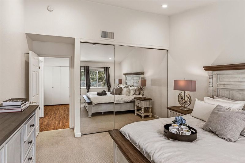 Gorgeous 3 Bedroom in quiet location of Deer Run 2. Townhome style 2 level with guest bedroom and 1/2 bath on ground level. * Click on Tour for more pictures and floorplan * Spacious living room with custom fireplace, room for large screen and sectional. Recessed LED lighting throughout. This bright and sunlit home is truly special with extraordinary outdoor living space a gorgeous white trellis that blooms! Kitchen cabinets are freshly painted, tile inlaid floors, counter bar top overlooking your welcoming outdoor retreat. Home freshly painted. Primary has high ceilings, large walk-in closet, marble tile with large tub. Private view. Laundry is nicely placed by your bedrooms so no going up and down stairs for laundry. 2 Car attached garage has epoxy floor and extra attic storage. EV "ready" in the garage. Low HOA dues of $383. HOA covers Water and Garbage, Management, Exterior, Fences, Roof, Common Areas, Pool and Spa, Insurance and Liability.