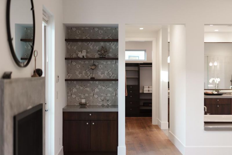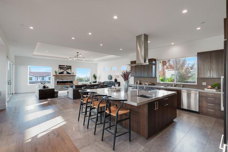- Cooktop - Gas, Countertop - Quartz, Dishwasher, Garbage Disposal, Hood Over Range, Island, Microwave, Oven - Built-In, Oven - Double, Oven - Electric, Pantry, Refrigerator, Wine Refrigerator