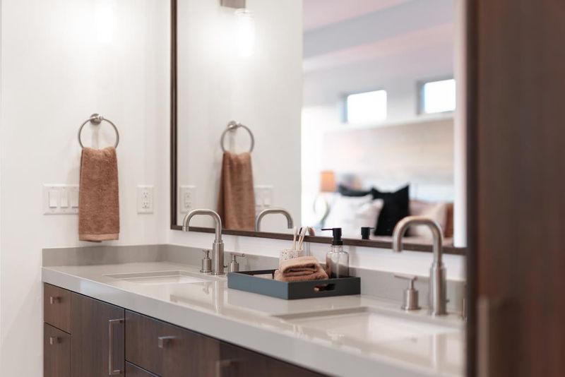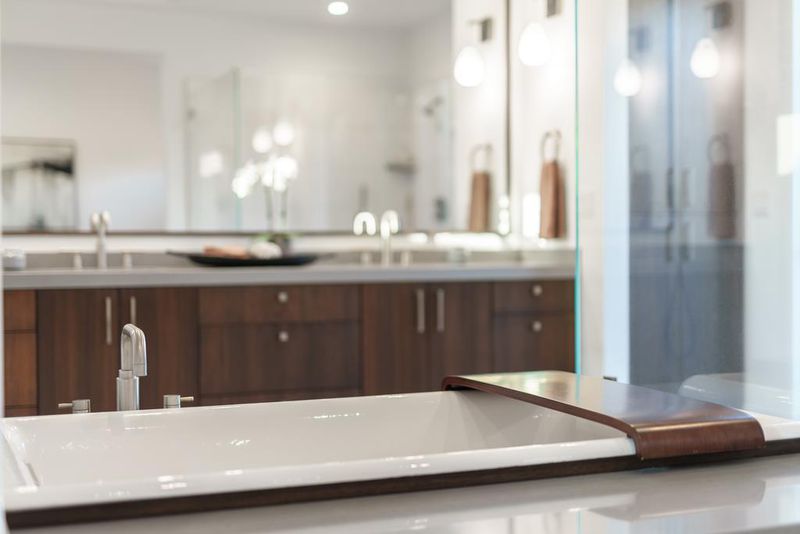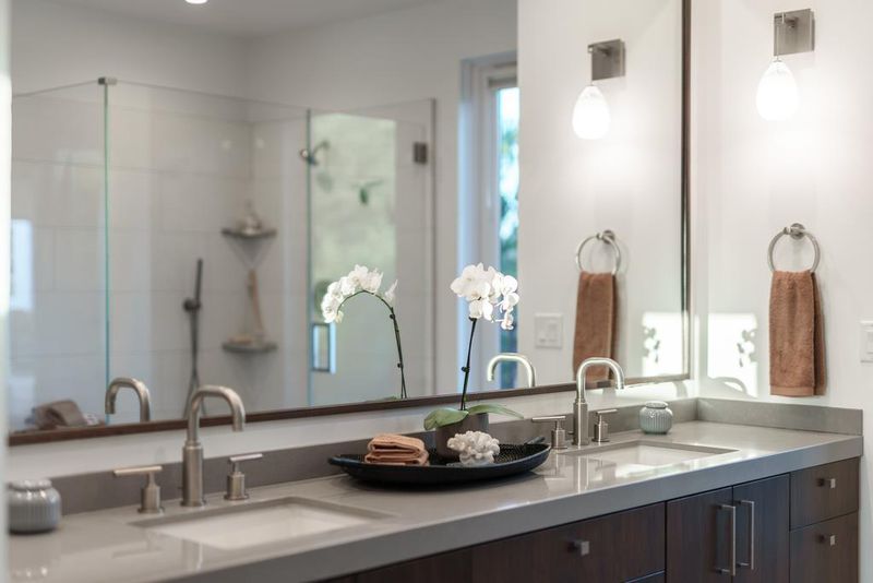 - Double Sinks, Full on Ground Floor, Half on Ground Floor, Outside Access, Primary - Oversized Tub, Primary - Stall Shower(s), Shower and Tub, Stall Shower, Tile