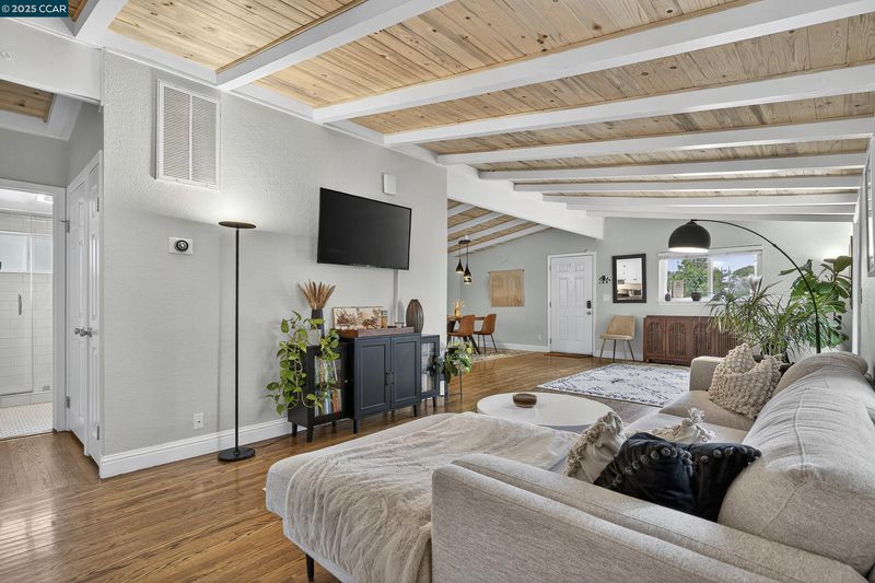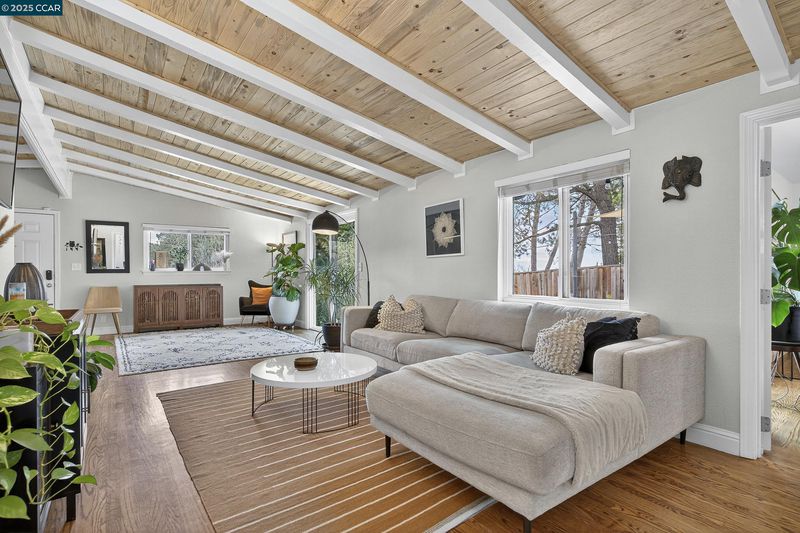 This absolutely delicious mid-century modern home blends character, charm, and a refined confidence. It’s the kind of home that makes you smile the moment you step onto the original hardwood floors under the embrace of its vaulted ceilings. The backyard gives mini-courtyard vibes with a full-spectrum orchard of developing fruit trees: Persimmon, Lemon, Pomegranate, Apricot, Peach, and Fig, offering the kind of tree diversity that practically makes its own fruit cocktail. An additional front yard lined with mature rosemary bushes provides bonus space for any outdoor activities such as a dinner party, barbeque, play space, and more. Conveniently located just off Highway 4, you’re less than five minutes away from grocery stores, coffee shops, and local restaurants. Martinez is a hidden gem, located right on the bay, surrounded by green space, protected regional reserves, a marina, and a charming, historical downtown.