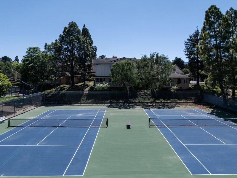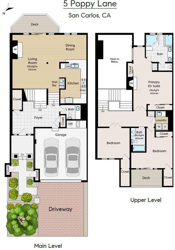 Tucked at the end of a quiet cul-de-sac in the hills of San Carlos, this Mediterranean-style home offers the kind of setting that's hard to come by sweeping panoramic views of the bay and canyon, and beautifully finished interiors that are equally suited for relaxed everyday living and effortless entertaining. Beyond a private gated courtyard, a covered entry welcomes you into a grand foyer where dramatic ceilings, abundant natural light, and seamless indoor-outdoor flow set the tone. Spanning approximately 2,340 square feet, this 3-bedroom, 2.5-bath home features a spectacular living room with vaulted ceilings, skylights, dual seating areas, a striking stacked-stone fireplace, and a wet bar with wine refrigerator - perfect for entertaining. The remodeled chefs kitchen showcases granite countertops, mosaic backsplash, stainless steel appliances, a 5-burner gas range, double ovens, and peninsula seating, opening to a view-filled dining area. The private primary suite offers vaulted ceilings, skylight, fireplace, custom built-ins, dual closets, and a spa-like bath with jetted tub and dual vanity. Resort-style HOA amenities including pool, spa, tennis courts, and clubhouse all near parks, trails, and Hwy 280 access. Outstanding San Carlos schools plus highly rated Carlmont High.
