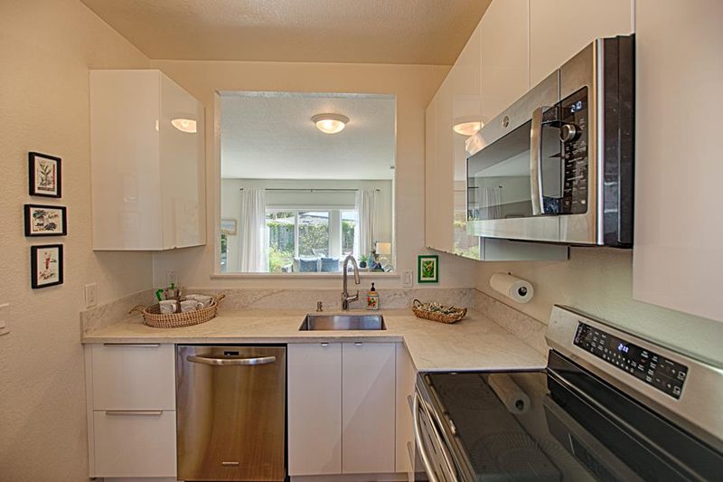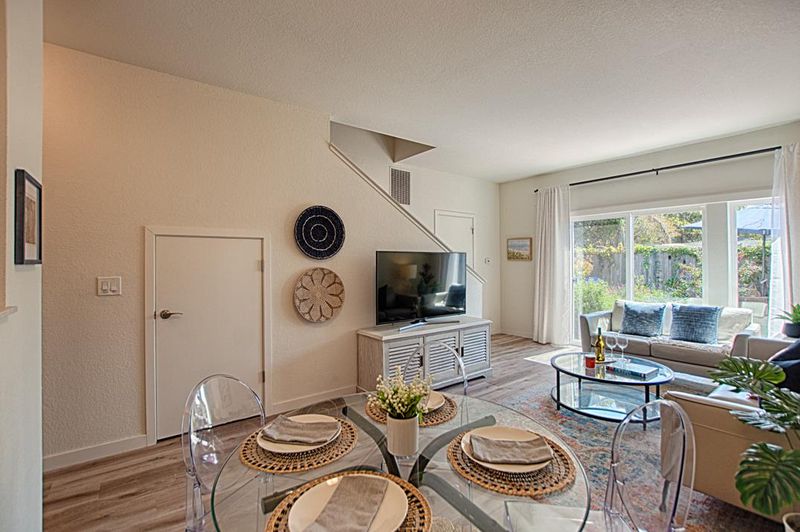 Located in the coveted Twin Lakes neighborhood, within a couple blocks from Sunny Cove beach, this beautifully updated end unit is turn key, move in ready with a big, sunny backyard and a second floor ocean view! Perfect location near the beach, the Sunday farmers market and dozens of shops, cafes, brew-pubs & restaurants. With all new flooring downstairs, new windows, new kitchen, updated bathrooms, new shelves and workbench installed in the garage and a complete overhaul of the front and back yard. This is the unit you have been waiting for! Everything has been thoughtfully done for you! The layout of this unit has 2 spacious primary suites upstairs and living & dining area downstairs, with a convenient half bath for guests. Fully fenced, private and south facing backyard, perfect for gardening, entertaining or just relaxing in the sun. With attached 1 car garage with laundry hookups and a carport. East Cliff Village Townhouses is a small complex with friendly neighbors. Homes here do not come on the market very often.This is elevated beach living at its finest!