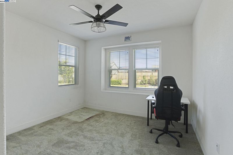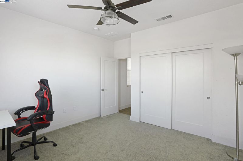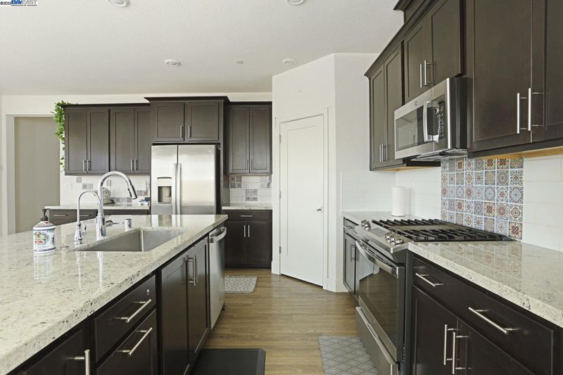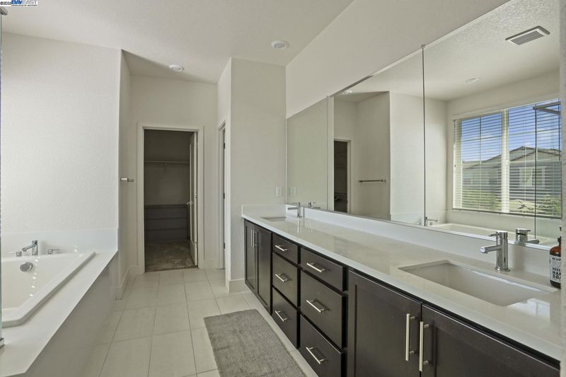 Welcome to this GORGEOUS EAST FACING, 4 BEDROOM, 3 BATHROOM, 2 CAR GARAGE, OWNED SOLAR, BUILT IN 2021, 2,563 sq ft of living space sitting on a massive 5,734 sq ft lot in the highly sought after TRACY HILLS. Upgrades include WOODEN VINYL FLOORS, PREMIUM CARPETS,& EPOXY FLOORING and STORAGE RACKS in the garage. It’s designed for comfortable living as the 1st floor comes with a bedroom and full bathroom. The great room combines the living room, kitchen and dining area creating an open and inviting area with plenty of natural light. The MODERN KITCHEN boasts QUARTZ COUNTERTOPS, SLEEK STAINLESS STEEL APPLIANCES, A LARGE ISLAND, CUSTOM BACKSPLASH, & WALK-IN PANTRY. The primary suite is a true sanctuary with a luxurious en suite bath featuring a LARGE SOAKING TUB, SEPARATE SHOWER, HIS AND HER SINK, AND A GENEROUS WALK-IN CLOSET. Enjoy the LARGE BACKYARD with FULLY GROWN FRUIT TREES and lots of green space to play & party with family & friends. Enjoy unparalleled PRIVACY as there is lots of open space in the NORTH/EAST CORNER & front of the home. It’s walking distance to TOP RATED CORRAL HOLLOW ELEMENTARY SCHOOL. Amenities include a CLUBHOUSE, & SWIMMING POOL perfect for summer. You’ll have EASY ACCESS TO I-580 & ACE train station. Don't miss the chance to make this your dream home!!!