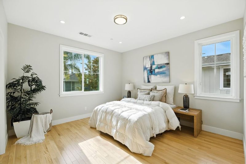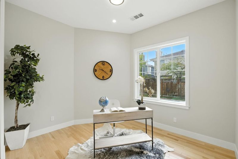 Newly completed home in the quaint San Tomas Area of Campbell. Top quality craftsmanship and finishes. Open-concept floorplan ideal for modern living. High-end amenities include central A/C, recessed lighting, and solar system. Luxurious design with light hardwood floors, detailed raised-panel cabinetry, textured tiles, and quartz countertops. Spa-inspired bathrooms. Ground floor junior suite for office or guest quarters. Chefs kitchen in cream tones with large island, double sinks, and stainless steel appliances. Contemporary, linear fireplace in living room, with abundance of natural light. Sliding doors to private patio and newly landscaped private back yard. Upstairs reveal 2 guest bedrooms sharing an elegant hallway bath, and a spacious laundry room. Serene primary suite is light and bright. Oversized walk-in closet. High-end ensuite bathroom with dual sinks and industrial glass shower door. Finished attached 2-car garage for flexible use. Easy access to routes 85, 17 & 280. Only 2 miles to Netflix. Close to private schools like Harker and award-winning public schools like Forest Hill Elementary. Call it home today!