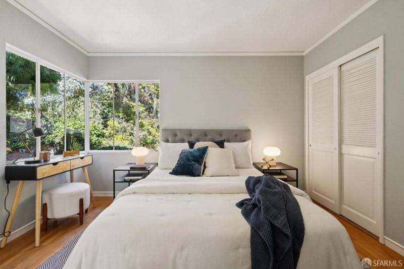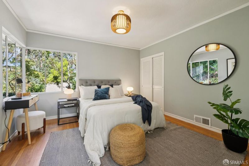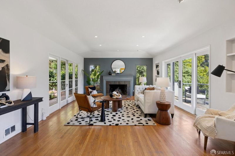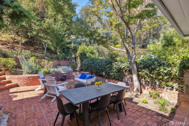 Tucked at the end of a peaceful cul-de-sac just steps from Montclair Village, this nearly quarter-acre retreat blends leafy tranquility with unbeatable walkability. Step inside to a bright and airy living room anchored by a cozy fireplace, where double doors connect to both a front balcony and a private backyard oasis indoor outdoor living at its best. The fully fenced rear yard is ideal for pets, or weekend entertaining under the trees. The main level features a cheerful dining room, two inviting bedrooms, a skylit bath, and a thoughtfully designed kitchen with a sunny breakfast nook. Downstairs, the versatile third bedroomwith its own exterior entranceoffers endless possibilities as a private guest suite, home office, or family room. A second bath, wine room, wet bar, and bonus space round out this flexible lower level. Original steel casement windows frame lush outlooks in nearly every room, while a brand-new roof brings peace of mind for years to come. A spacious two-car garage with interior access provides abundant storage. Easy freeway access gets you to downtown SF in under 30 minutesor keep it local with a 5-minute stroll to Montclair's coffee shops, farmers market, and local restaurants. A verdant sanctuary with city living at your doorstep. Welcome Home.
