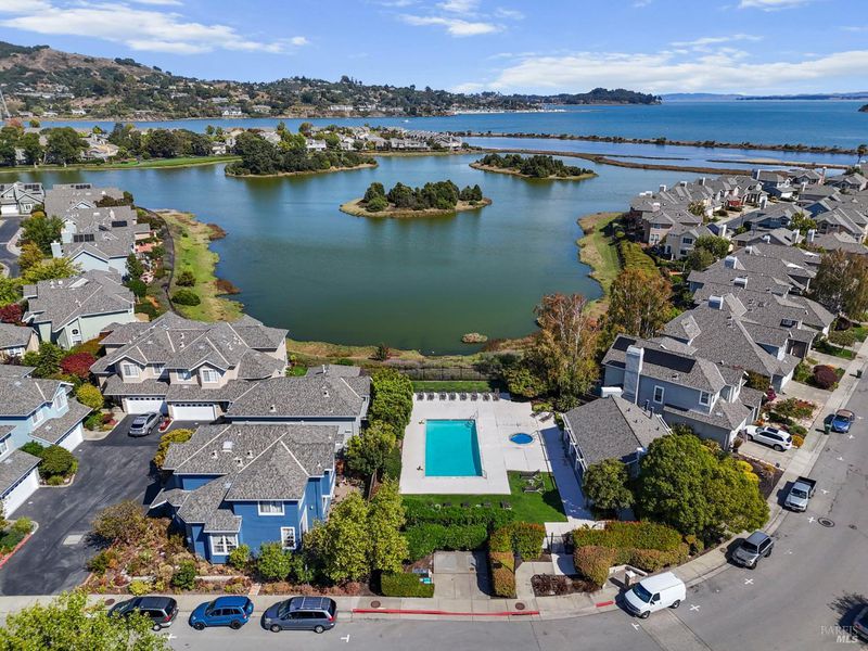 Nestled in the wonderful community of Baypoint Lagoon, just steps from walking paths, pickleball and tennis courts with a beautiful community pool, spa and clubhouse. This immaculately kept, attached single-family home offers a rare blend of privacy with an abundance of light, open and spacious floor plan throughout. Completely move in ready. The main level features open living and dining areas with high ceilings. Living and family rooms both include cozy gas fireplaces. A well laid out pristine and open kitchen adjoins the family room. A light filled sliding glass door welcomes you into the private backyard. Upstairs, the primary suite boasts an expansive room with cathedral ceiling, customized recessed entertainment cabinet and both a walk-in and second closet. The inviting primary bath includes a deep soaking tub, separate shower and double sink vanity. Three additional light-filled bedrooms includes a versatile den/office/bedroom. Meticulously maintained and established yards, including a beautiful deck, creates ample room for a relaxing and private oasis. Interior access garage with wall lined custom floor to ceiling cabinets. Enjoy immediate access to the endless amenities that both Marin and San Francisco have to offer.