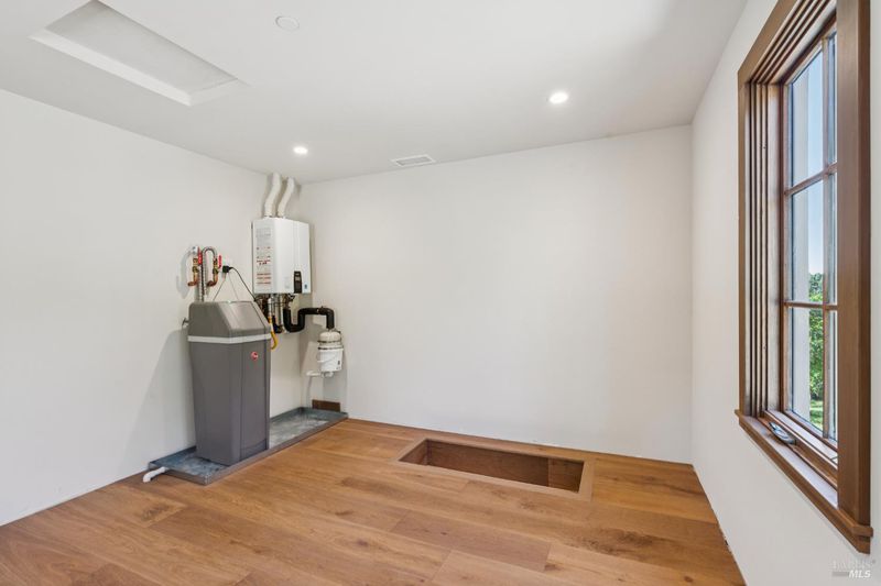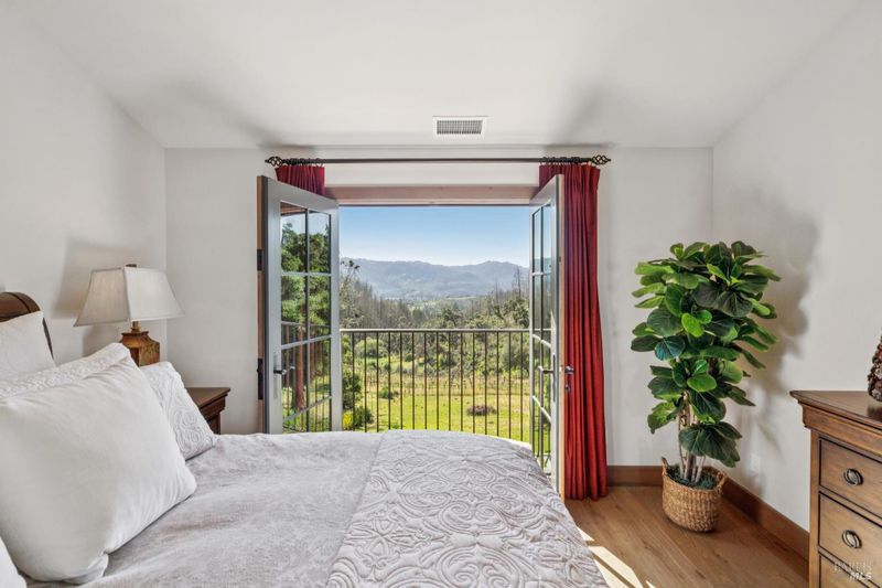 Set on 2.52 private acres with sweeping valley and vineyard views, this stunning new construction European Country home is a rare offering in one of California's most coveted destinations. Thoughtfully designed and impeccably finished, every detail reflects an unwavering commitment to quality. The chef's kitchen features custom Wood Mode cabinetry, dramatic basalt countertops, a Miele range, Viking refrigerator and dishwasher, and a dedicated Subzero wine fridge. Living spaces are warm and timeless, anchored by hardwood floors, solid core doors, and Loewen windows that frame the landscape like living art. The fireplace a sculptural Ortal Wilderness unit with a custom Tartauga mantle becomes the natural gathering point for cool Napa evenings. Bedrooms feature California Closets built-ins, while bathrooms are finished in limestone tile with Rohl and Phylrich fixtures. Practical luxuries include an on-demand hot water system, Rheem water softener, and California Closets cabinetry in the laundry and pantry. A detached 3-car garage with 900 sq ft of unfinished space above complete with architectural drawings for a potential guest suite offers exciting possibilities for expansion. Don't miss the opportunity for this brand new build in Wine Country.