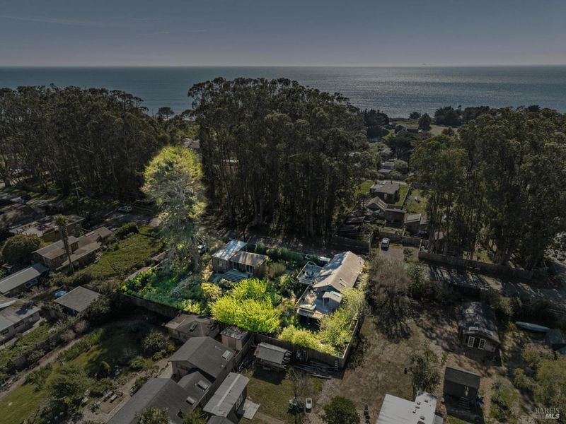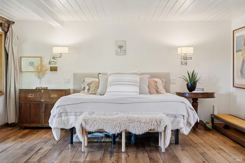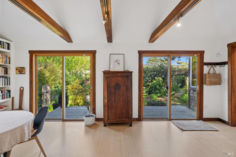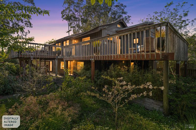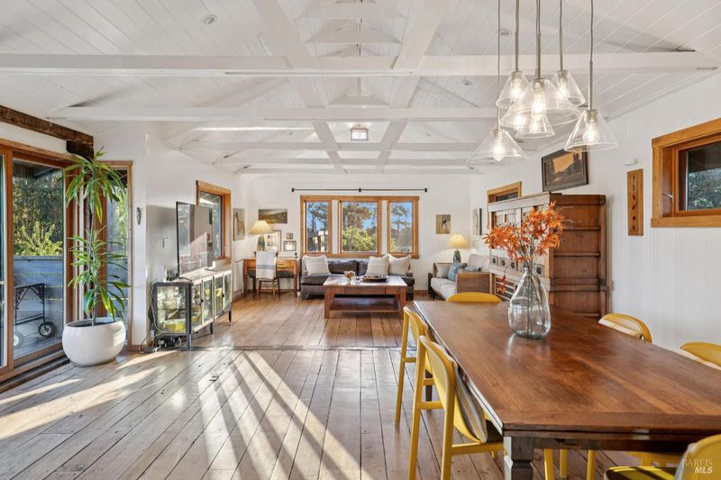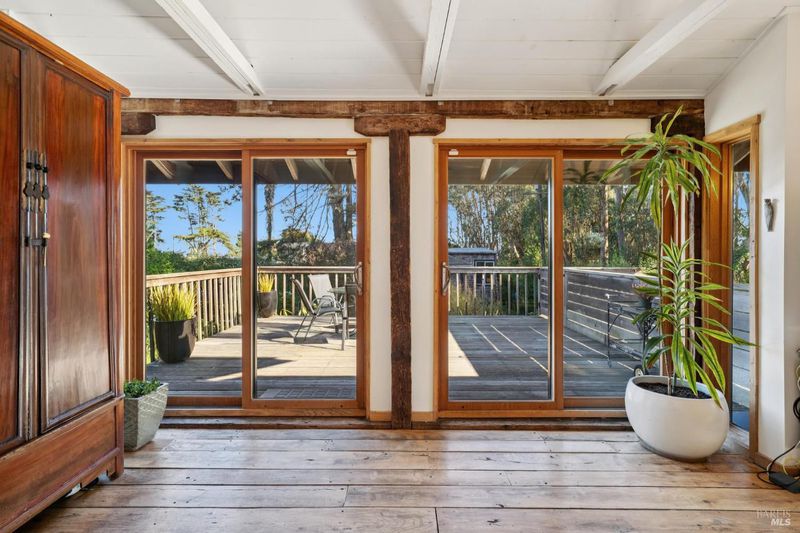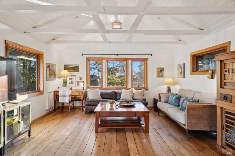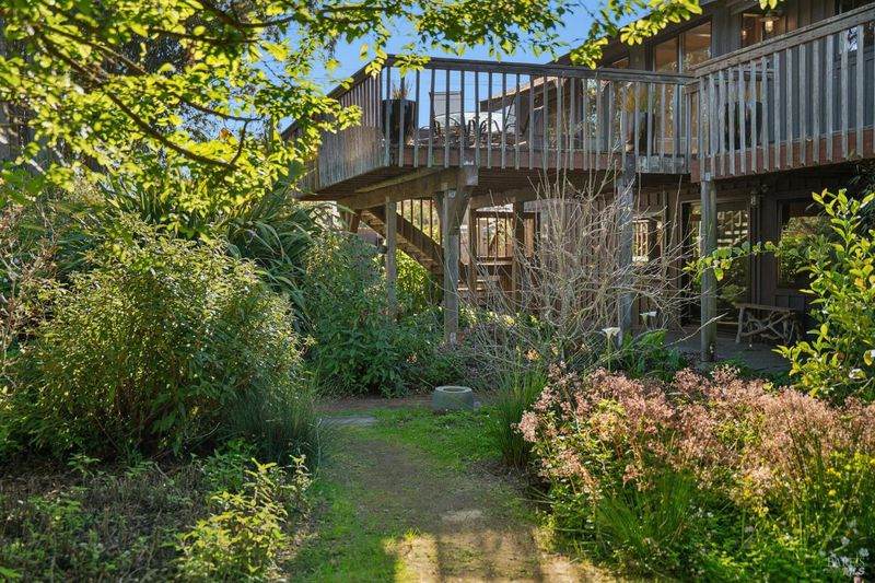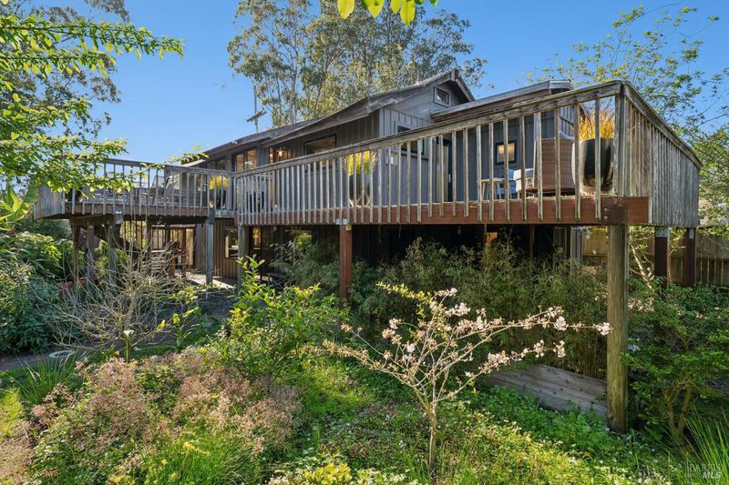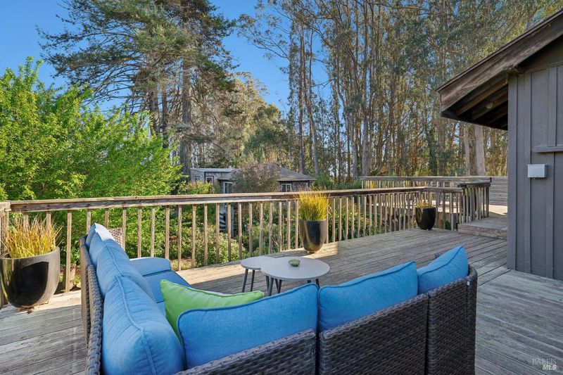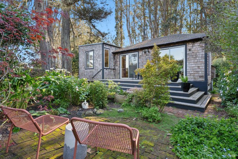 Where ocean air and the rhythms of coastal life unfold just moments from Agate Beach. Two distinct homes set on a beautifully landscaped, nearly quarter-acre lot with mature trees and a peaceful natural setting, moments from Agate Beach in the heart of Bolinas; ideal for multigenerational living, guests, or flexible coastal living with two independent homes on one property. Tucked into the quiet charm of Bolinas, one of Marin County's most storied and fiercely protected coastal communities, this rare property offers privacy, natural beauty, and versatility in one of Northern California's most distinctive seaside villages; framed by views of the coastal mountains and glimpses of the nearby Pacific shoreline, the setting provides a peaceful retreat just minutes from the beach. The property reflects the same relaxed, creative spirit and understated charm that have long defined the Bolinas community. Behind a gated and fully fenced entry, the property unfolds as 2 independent homes, each with its own entrance, parking area, and outdoor living spaces; this unique configuration offers possibilities including a primary residence with a guest house, multigenerational living, creative studio space, or part-time coastal living with room for visitors. Both homes have undergone extensive remodeling and thoughtful improvements, blending historic character with modern systems and finishes. The 2-story main home, originally built in the 1950s from reclaimed shipwreck wood gathered along the nearby coastline, reflects Bolinas' maritime heritage, with that historic wood preserved in the home's flooring today. Expansive decks, an outdoor shower, and steel-and-glass doors invite natural light and ocean air indoors. Just beyond the garden gate sits the charming 1926 cottage, thoughtfully updated while preserving its vintage character, featuring bamboo flooring, underfloor heating, energy-efficient systems, walnut cabinetry, abundant natural light, and beautiful, solid-wood interior doors with inset stained glass. Outdoor spaces embrace the indoor-outdoor coastal lifestyle, with subtle glimpses of the ocean and thoughtfully landscaped gardens that provide peaceful places to relax and gather. Life in Bolinas offers something increasingly rare, from the tide pools and cliffs of nearby Agate Beach to the wildlife of Bolinas Lagoon, a community long cherished by artists, surfers, and nature lovers seeking a slower pace of coastal living.