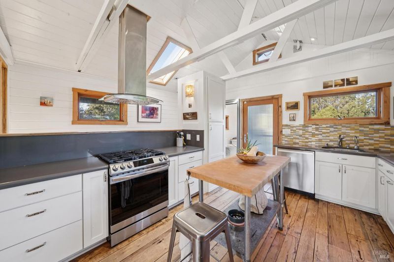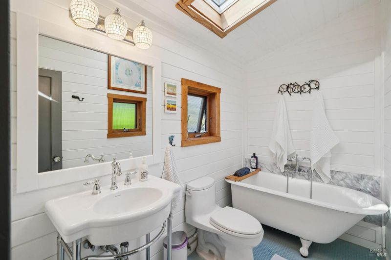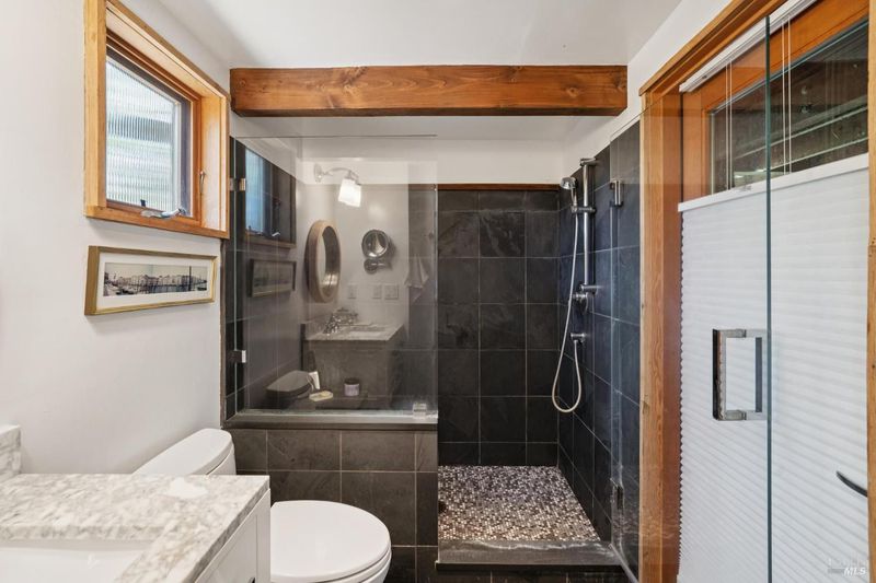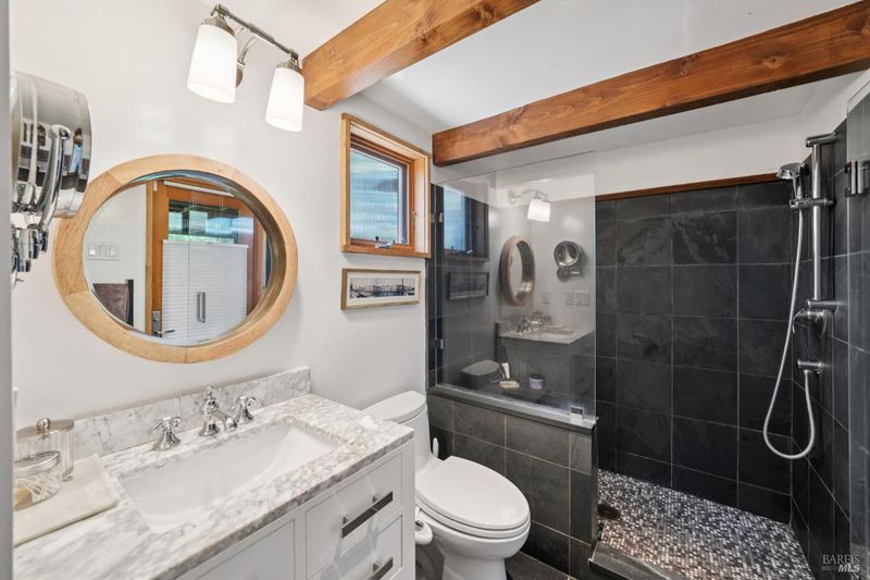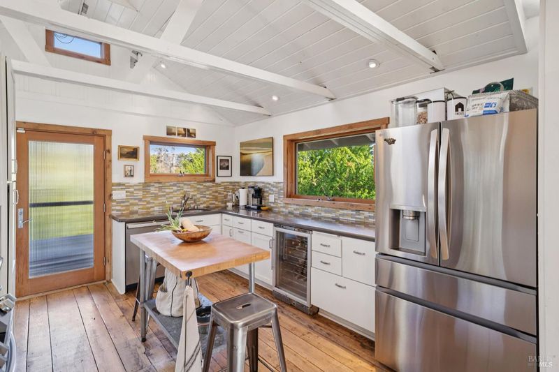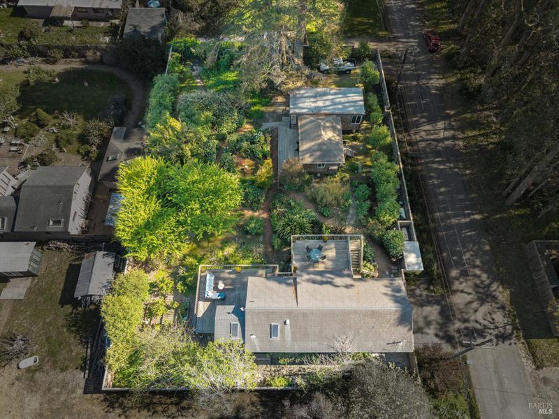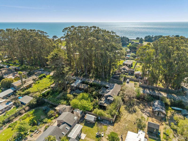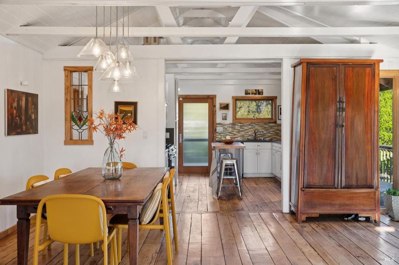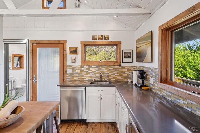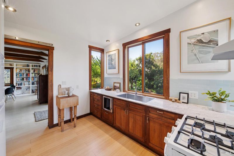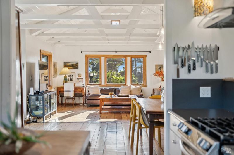 Where ocean air and the rhythms of coastal life unfold just moments from Agate Beach. Two distinct homes set on a beautifully landscaped, nearly quarter-acre lot with mature trees and a peaceful natural setting, moments from Agate Beach in the heart of Bolinas; ideal for multigenerational living, guests, or flexible coastal living with two independent homes on one property. Tucked into the quiet charm of Bolinas, one of Marin County's most storied and fiercely protected coastal communities, this rare property offers privacy, natural beauty, and versatility in one of Northern California's most distinctive seaside villages; framed by views of the coastal mountains and glimpses of the nearby Pacific shoreline, the setting provides a peaceful retreat just minutes from the beach. The property reflects the same relaxed, creative spirit and understated charm that have long defined the Bolinas community. Behind a gated and fully fenced entry, the property unfolds as 2 independent homes, each with its own entrance, parking area, and outdoor living spaces; this unique configuration offers possibilities including a primary residence with a guest house, multigenerational living, creative studio space, or part-time coastal living with room for visitors. Both homes have undergone extensive remodeling and thoughtful improvements, blending historic character with modern systems and finishes. The 2-story main home, originally built in the 1950s from reclaimed shipwreck wood gathered along the nearby coastline, reflects Bolinas' maritime heritage, with that historic wood preserved in the home's flooring today. Expansive decks, an outdoor shower, and steel-and-glass doors invite natural light and ocean air indoors. Just beyond the garden gate sits the charming 1926 cottage, thoughtfully updated while preserving its vintage character, featuring bamboo flooring, underfloor heating, energy-efficient systems, walnut cabinetry, abundant natural light, and beautiful, solid-wood interior doors with inset stained glass. Outdoor spaces embrace the indoor-outdoor coastal lifestyle, with subtle glimpses of the ocean and thoughtfully landscaped gardens that provide peaceful places to relax and gather. Life in Bolinas offers something increasingly rare, from the tide pools and cliffs of nearby Agate Beach to the wildlife of Bolinas Lagoon, a community long cherished by artists, surfers, and nature lovers seeking a slower pace of coastal living.