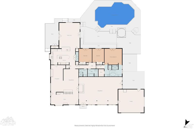 - Bedroom(s), Dining Room, Full Bath(s), Garage, Kitchen, Living Room, Primary Bedroom