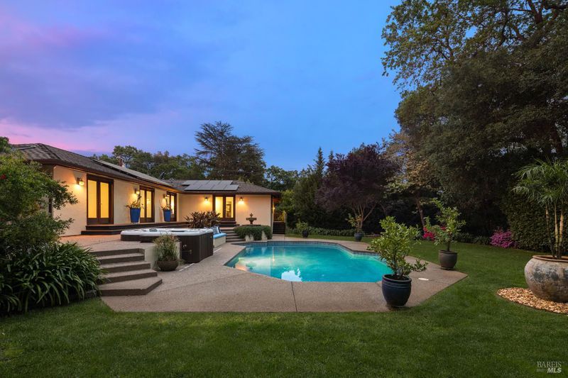 Single-level living on just over an acre, where the entire setting unfolds like your own private park, quiet, expansive, and intentionally designed to feel worlds away. Three bedrooms and three full bathrooms across approximately 3,872 square feet, offering a seamless balance of indoor comfort and outdoor living. Each bedroom is thoughtfully positioned with direct access to the outdoors, bringing in natural light and creating a strong connection to the surrounding landscape. The primary suite is a true retreat, featuring a walk-in steam shower, soaking tub, dual vanities, and a walk-in closet. Radiant floor heating throughout the home adds a level of comfort that is felt, not seen. Inside, the home has been thoughtfully updated with fresh interior and exterior paint, a new kitchen backsplash, an upgraded 200-amp electrical panel, and owned solar. The kitchen opens seamlessly to the main living space, with doors leading directly to the pool and deck, creating an effortless indoor-outdoor flow. Multiple interior living spaces offer distinct atmospheres, ideal for both intimate evenings and larger gatherings. This is the kind of property people come to Sonoma looking for and rarely find. The grounds are immaculate, with multiple destinations throughout the property to gather, host, unwind, or simply step away and reset. The pool has been resurfaced with PebbleTec and enhanced with new border and stair tile, complemented by a freestanding spa, creating a true resort-style experience at home. Rare short-term rental eligibility provides flexibility for those looking to offset ownership while maintaining a personal retreat. This is turnkey Wine Country living, elevated, private, and intentional. Just minutes from Sonoma's Historic Downtown Plaza, yet a world apart, with access to renowned wineries, boutique shopping, a private golf course, scenic hiking and biking trails, excellent schools, and world-class dining and events. A property that does not just check boxes, it creates a lifestyle.