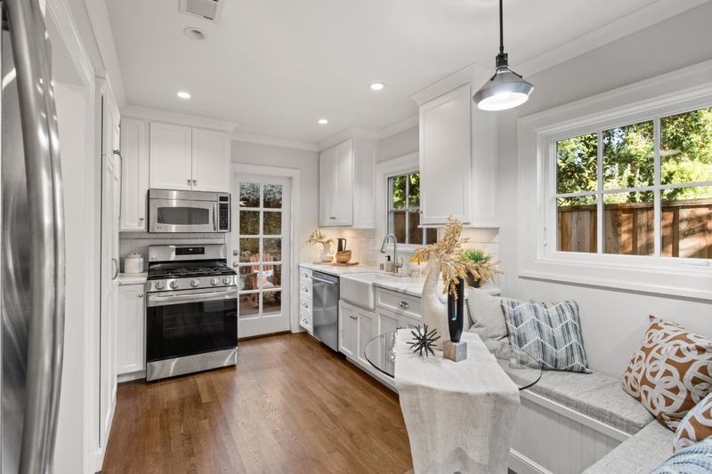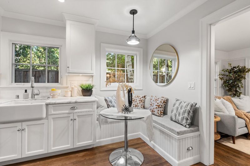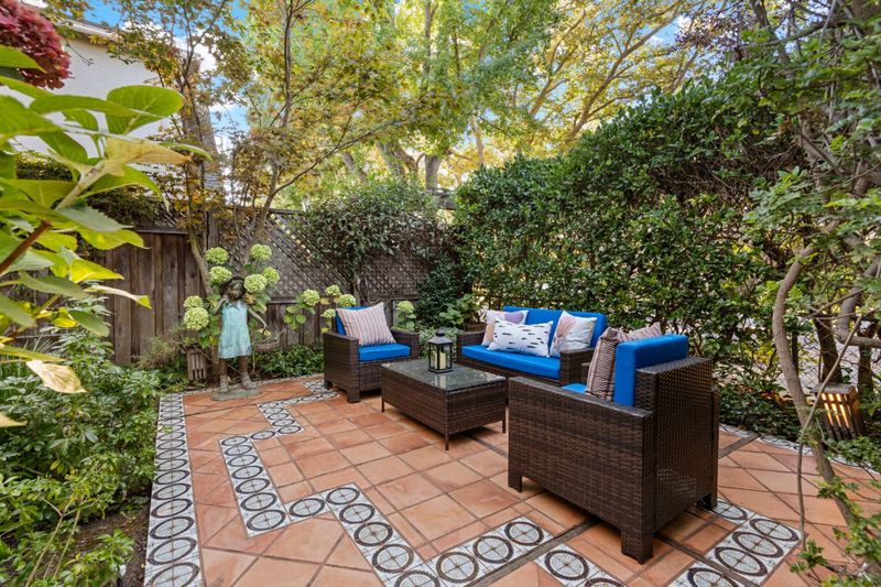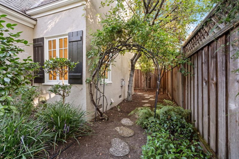 With 1,100 sq. ft. of living space, this English Tudor style cottage near downtown Palo Alto is a jewel box home blending European heritage with California sophistication. Inspired by the Tudor grace that once influenced Walt Disneys castle, it evokes storybook beauty with modern comfort and craftsmanship. Walk up to a manicured courtyard framed by hydrangeas and greenery, a serene retreat for afternoon tea or quiet gatherings. Inside, traditional architectural details including picture rail moldings, decorative millwork, marble accents, and hardwood floors highlight timeless craftsmanship. This home offers an exceptional alternative to condominium living with the privacy of a standalone residence. The living room features a classic fireplace with a new mechanism and new lightings, while the kitchen showcases marble counters, custom cabinetry, and a reupholstered banquette. 2 bathrooms echo the homes elegance with marble finishes and upgraded fixtures. 3 bedrooms include a spacious primary and a jewel box secondary with built ins. Recent updates such as fresh paint, new sewer lateral, and full termite tenting ensure peace of mind. Steps from University Avenue, Stanford, and top rated schools, this home captures the rare elegance of a mini mansion in the heart of Palo Alto.