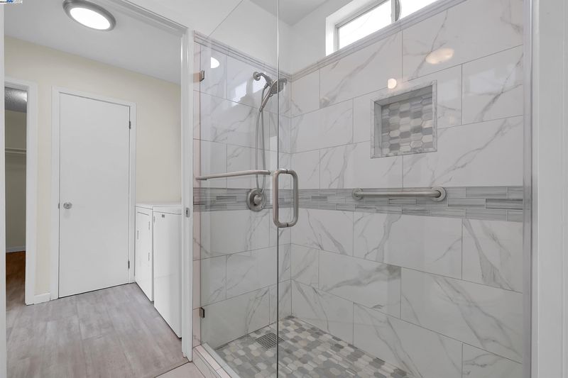 - Dishwasher, Free-Standing Range, Refrigerator, Dryer, Washer, Tile Counters, Range/Oven Free Standing
