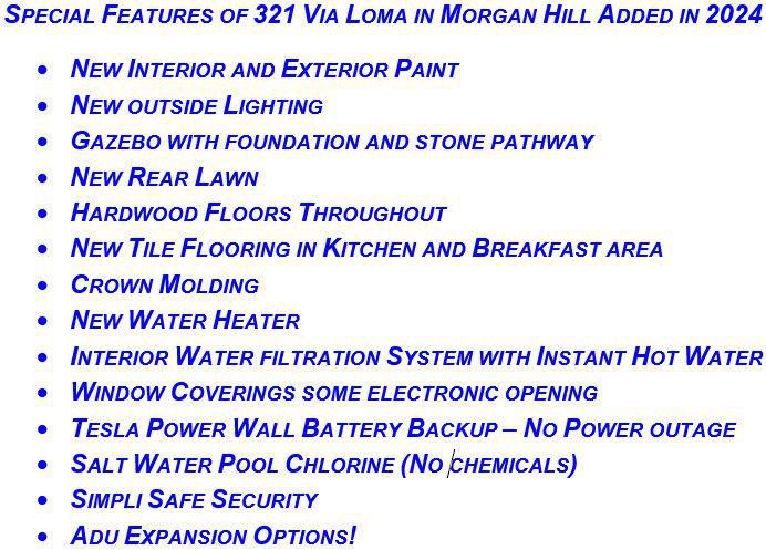 Prime North Morgan Hill Location. NO HOA! Very Private Corner-Lot Oasis with Resort Amenities & Eco-Friendly Tech. Step into this impeccably maintained 4-bedroom, 2-bath retreat, where modern convenience meets your own private resort. Spanning 1,723 sq. ft. of light-filled living space, this home flows effortlessly from a spacious living room into a bright dining area designed for seamless indoor-outdoor hosting. The chef-inspired kitchen shines with granite countertops, stainless appliances, and a large breakfast bar for casual mornings. The primary suite serves as a true sanctuary, featuring a freshly remodeled en-suite with a sleek double-sink vanity. However, the crown jewel is the expansive 9,258 sq. ft. corner lot, one of Morgan Hills most private. Escape to a backyard paradise boasting a sparkling heated pool, herb garden, and a dedicated gazebo/ living area and gym space. Enjoy your front yard With a pergola-covered front patio, leased solar, Tesla Power wall and a garage EV charging port, this home isn't just beautiful its future-ready.