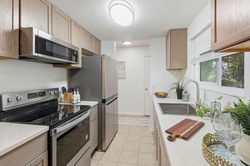 Gorgeous End unit single story condo that feels like a single-family home. This spacious 3-bed, 1.5-bath in 1084 square foot home is only connected on one side! There are no units above or below. This bright and spacious home features an open living/dining area open to a private back patio. Tons of natural light. The remodeled kitchen boasts quartz countertops, new cabinets, & stainless-steel appliances. Bathrooms are upgraded; the Expansive Master Suite offers a beautiful bathroom and a walk-in closet. Recessed lighting, fresh inside painting and extra storage units. Easily accessible laundry area, convenient reserved 1-car parking space and plenty of parking spaces inside the complex plus ample guest parking. A great complex which features a swimming pool and clubhouse. Close to Caltrain, Apple, Nvidia, and an easy commute with quick access to Lawrence, Central, 101, El Camino and downtown Sunnyvale. Easy parking for guests and beautiful landscaping. Ready to move in and enjoy all the benefits of a great location in Silicon Valley.