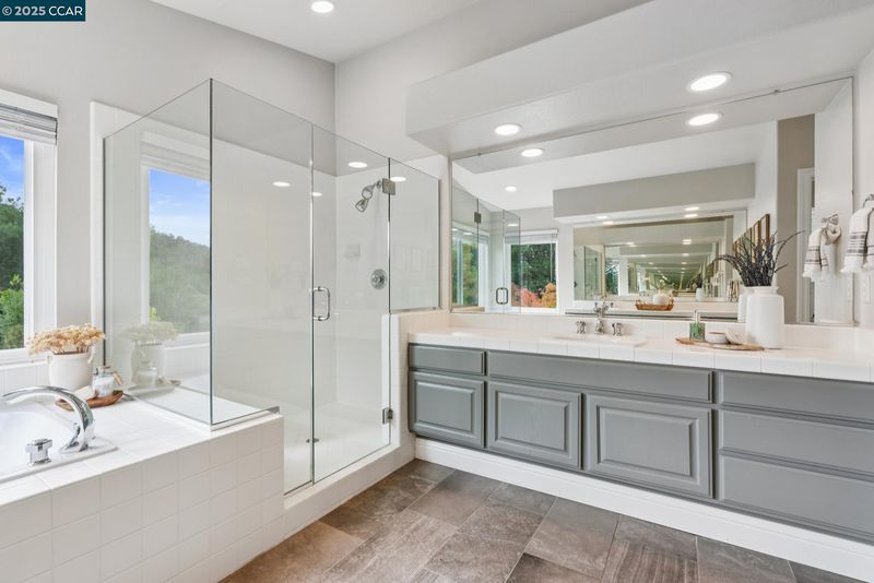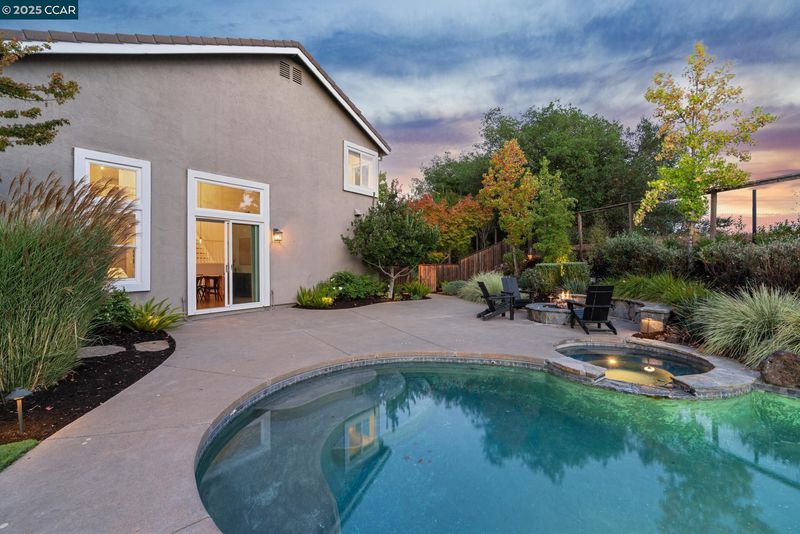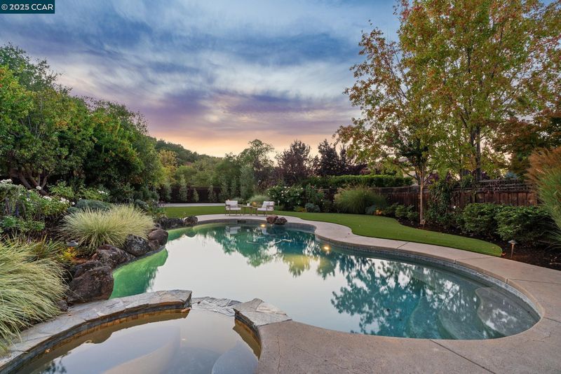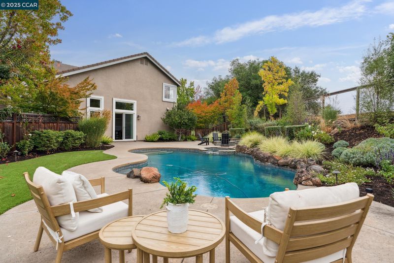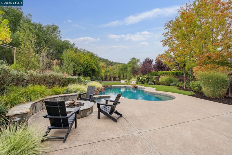 Located in the highly sought-after Reliez Valley Highlands, this stunning four-bedroom home with bonus room offers exceptional privacy and an expansive yard designed for entertaining. Upon entry, you’re welcomed into the gorgeous living room featuring vaulted ceilings, wood floors, and detailed crown molding. The spacious formal dining room is centrally located near the kitchen and provides sliding doors for backyard access. The gourmet kitchen boasts quartz countertops, stainless steel appliances including a double oven, and oversized picture window. Directly off the kitchen is an inviting family room with oversized windows and a custom fireplace. A sweeping circular staircase leads to private primary suite, highlighted by a fireplace and an abundance of natural light. The ensuite bathroom features dual vanities, his-and-her closets, a stall shower, tile flooring, and soaking tub. The upstairs bonus room includes custom built-ins, while the additional bedrooms are generously sized and share a full bathroom with dual sinks and a shower-over-tub. A convenient upstairs laundry room with sink completes the upper level. The backyard is a true entertainer’s delight, with multiple dining areas, a spa, pool and sport court all surrounded by mature landscaping backing to open space.