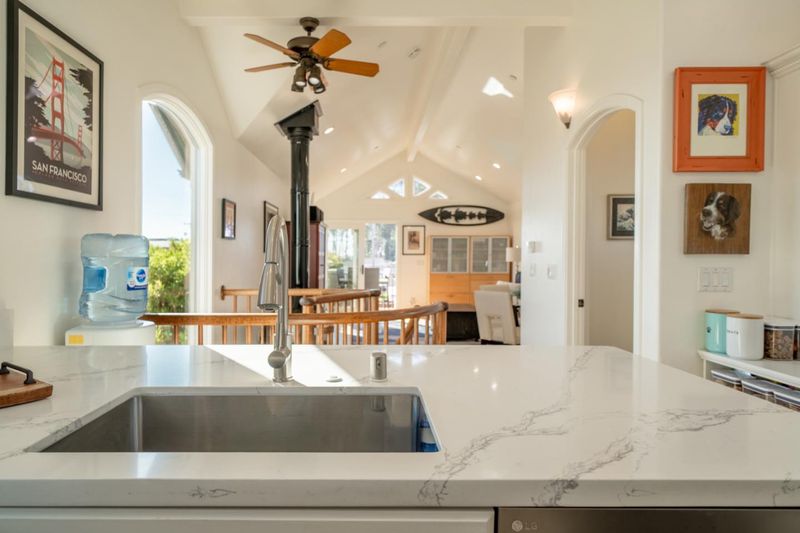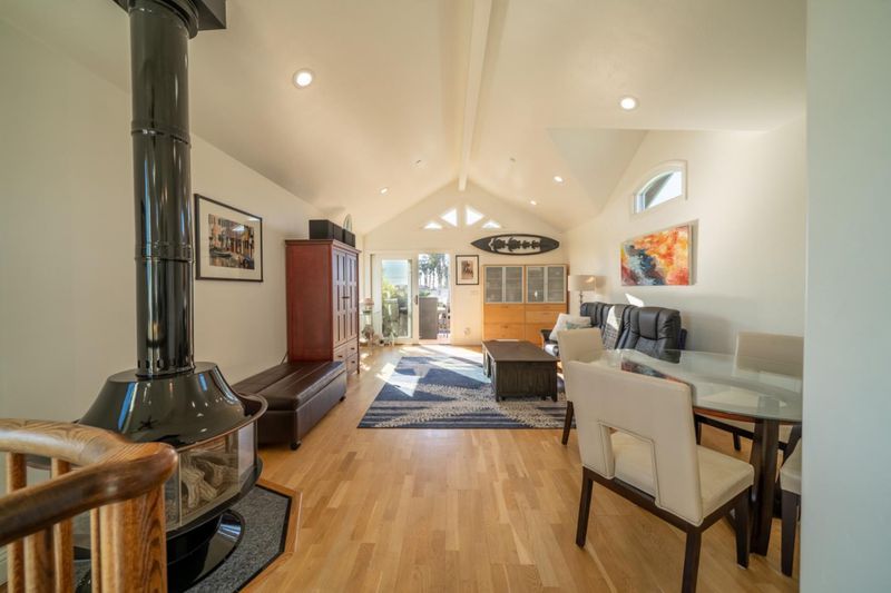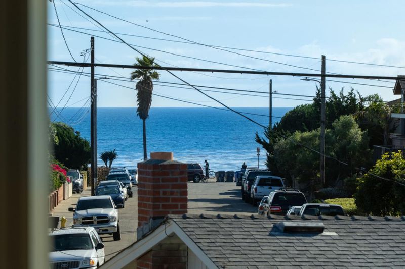Outstanding location in Pleasure Point, this home is just steps from renowned surf breaks, beaches, and walking paths. Custom designed and constructed in 2004, it features a reverse floor plan, high quality materials and ocean views. Most notable is the distinctive view down Rockview Drive and the ocean beyond. The upstairs living space boasts high ceilings, abundant windows, and a freestanding gas fireplace. The modern kitchen has quartz countertops and new appliances. Enjoy neighborhood and tree views while relaxing on the deck. Downstairs, the spacious primary suite features doors to the patio. The cozy spare bedroom is perfect for a bunk bed, office or creative space. Unique finishes such as beautiful blue tile in the entry, a bay window, and spiral staircase all add character. Radiant heated flooring throughout allows for an even temperature. The fenced, low maintenance yard is perfect for pets and the coastal lifestyle. Rinse off at the outdoor shower and store surfboards on the racks along the fence. Use the finished shed for a workout space or additional storage. Walk to coffee, or bike to restaurants, shopping or groceries. Located in one of the most sought-after neighborhoods in Santa Cruz, this home is ready for you to just move in and enjoy coastal living.
