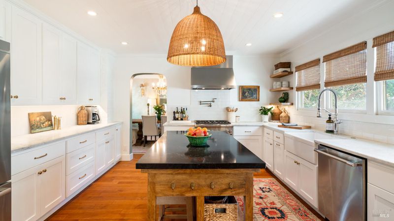 Timeless elegance meets modern Wine Country living in this beautifully reimagined 1937 residence, just moments from downtown Healdsburg and set on an expansive +/-.33-acre lot. The home offers four bedrooms and three full baths, including a spacious main-level primary suite with a fireplace, two walk-in closets, and a spa-like bathroom. The living room is perfectly sized and would transform to any aesthetic - it's that good. The kitchen is timeless, with a gas range, island, marble counters, pantry, and breakfast area. The feel is gracious and updated, with a nostalgic appeal, featuring a wonderful basement, sprawling bedrooms on the upper level, and a covered porch. It's the modern appeal that sets it apart, though, with thoughtful updating and everyday needs met. The backyard is a private retreat. A sparkling in-ground pool is framed by lush landscaping and raised garden beds, a trellised dining area, and a built-in barbecue. The large detached office provides flexibility and could be a recreational room, art studio, or potential ADU. Just blocks from the Healdsburg Plaza, you'll enjoy the beloved restaurant scene, fun wine tasting, summer concerts on the square, and our weekly farmers' market. A true Healdsburg gem.