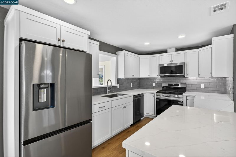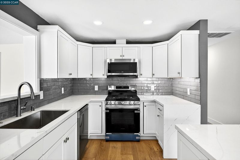 Modern Living with Style & Expansive Lot!! Discover refined single-story living in this tastefully Remodeled: 3 Bedroom & 2 Baths Home set on a generous 9,800 sq.ft. lot with serene views!! The custom-designed modern kitchen showcases stone countertops, sleek tile backsplash, and premium new appliances, ideal for both everyday living & entertaining. Throughout the home, wide-plank wood flooring, recessed lighting, and dual-pane windows create a warm, sophisticated atmosphere. Spa-inspired bathrooms feature artfully crafted stonework on the shower and tub walls, adding luxury to daily routines. Fresh interior & exterior paint, along with a spacious 2-car garage, central heating & AC system, complete this move-in-ready property. A rare opportunity to own a thoughtfully upgraded home with style, comfort, and curb appeal!!