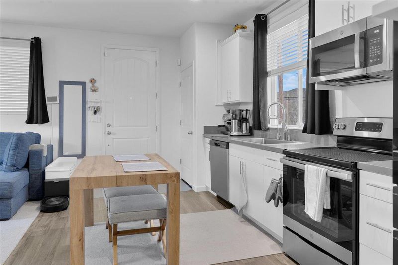 - Dishwasher, Garbage Disposal, Ice Maker, Microwave, Oven Range - Electric, Refrigerator