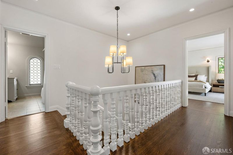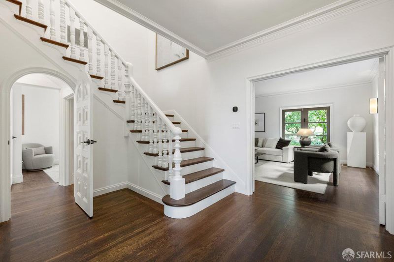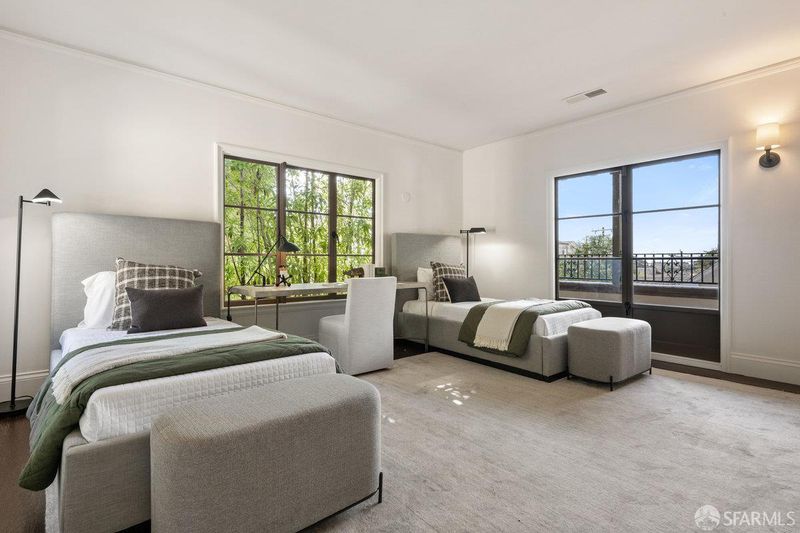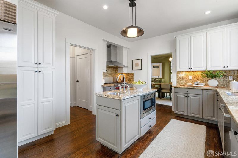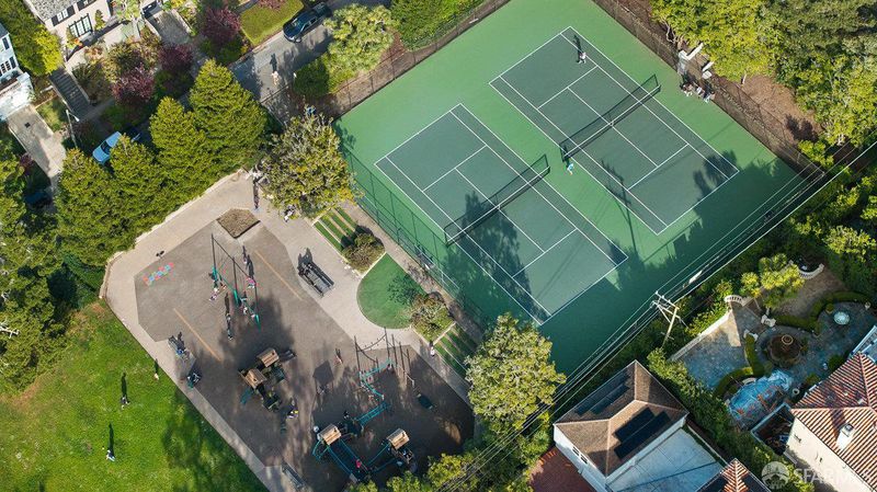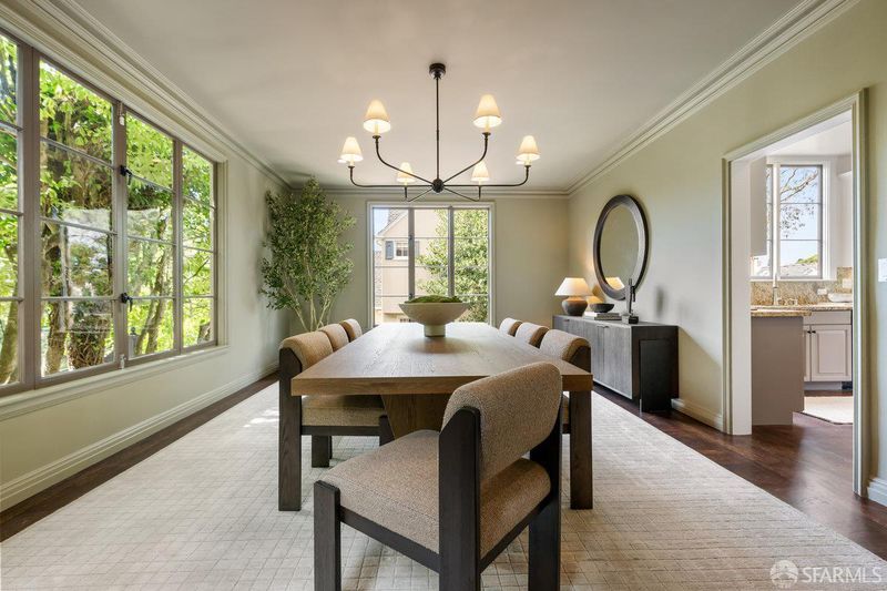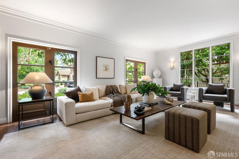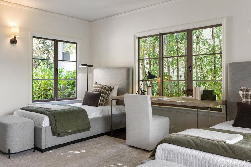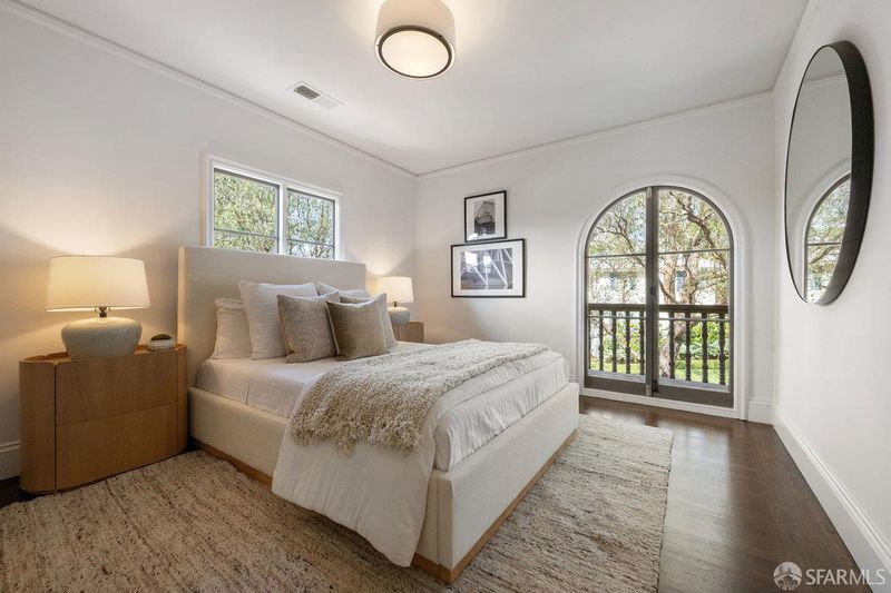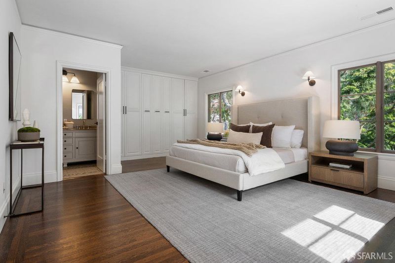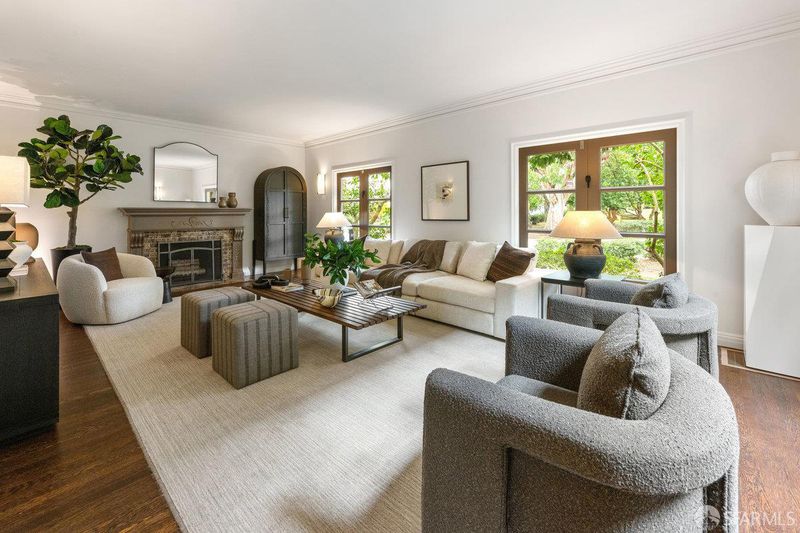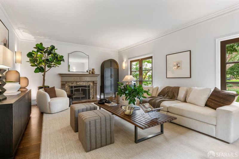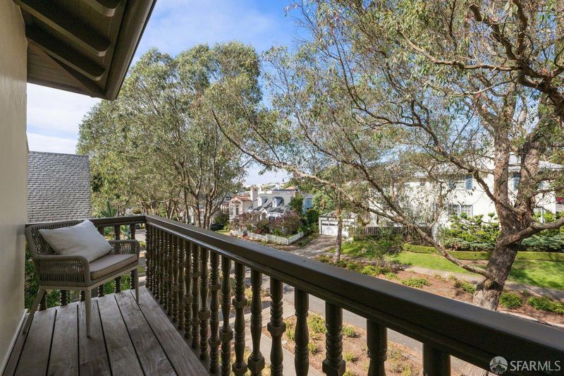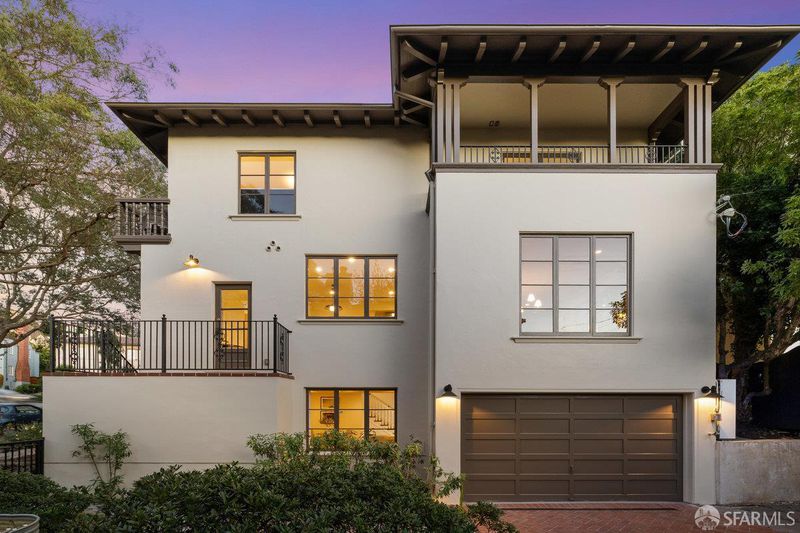 Situated on a fabulous corner lot across from Terrace Green Park and just blocks from West Portal Avenue, this stunning Spanish Mediterranean residence must be seen. Walking up the brick walkway will fill you with a sense of calm as you are surrounded by lush landscaping and mature trees. The grand alcove entry, adorned with wrought-iron details, opens to a large foyer. To the right, a spacious living room with a fireplace; to the left, a formal dining room bathed in natural light from windows on three sides. The thoughtfully designed kitchen features a central island with prep sink, built-in seating with storage, a SubZero refrigerator, and a Wolf range and lots of cabinet space. A bedroom and full bath complete the main level. Upstairs, the expansive primary suite boasts plenty of closet space and a luxurious ensuite bath. Two additional bedrooms, each with private balconies and a full bath, offer comfort and convenience. The lower level, added with permits in 2016, includes a wine cellar, wet bar, laundry room, half bath, and a generous media room. Interior access to the garage enhances convenience. Additional features include a new terracotta roof (2017), backup battery system, EV charger, automatic sprinkler system, driveway gate and so much more.