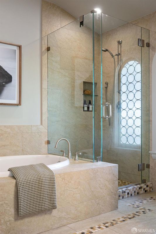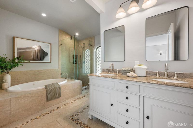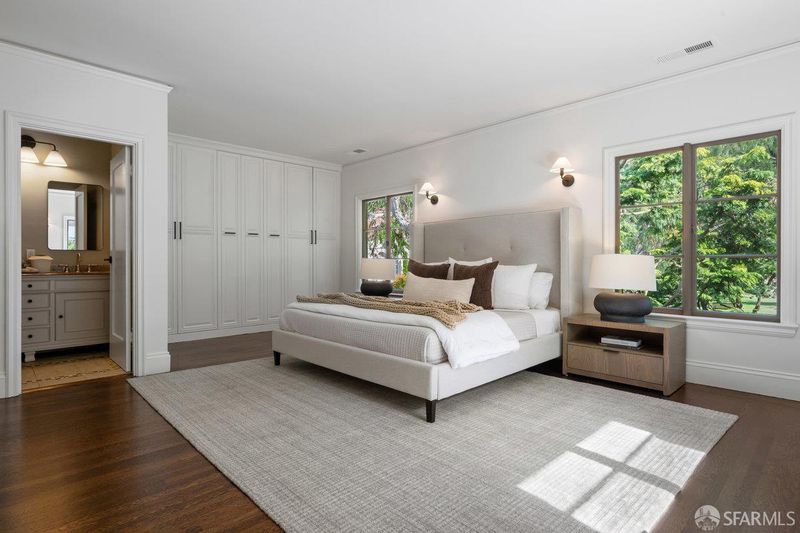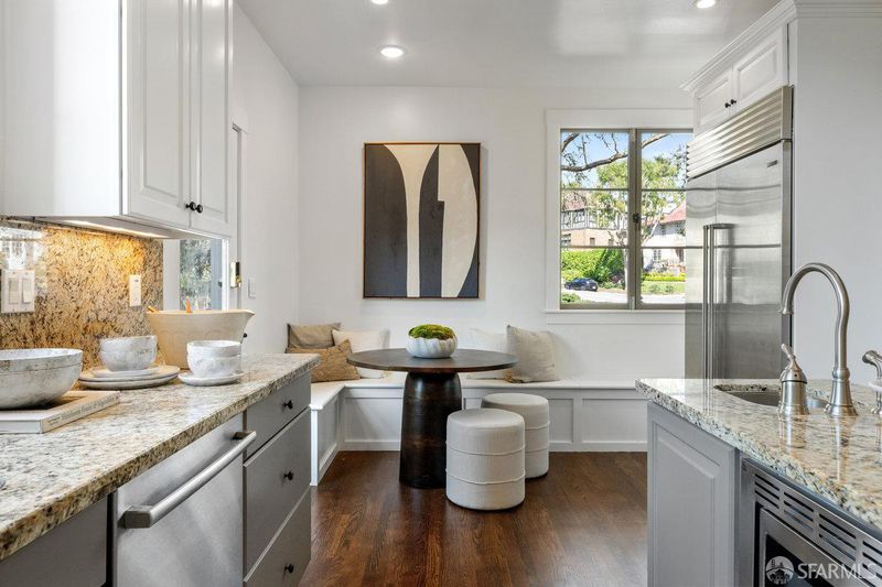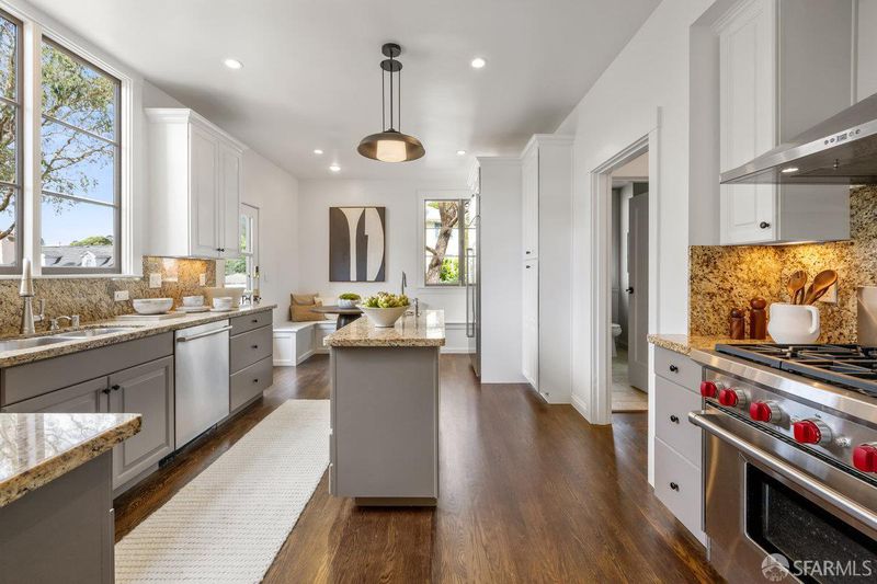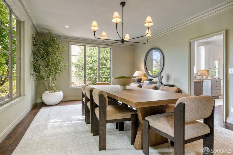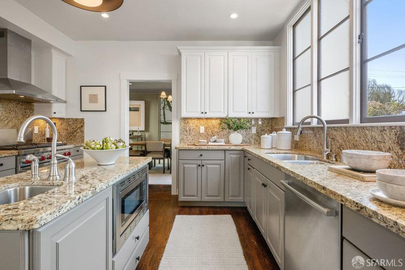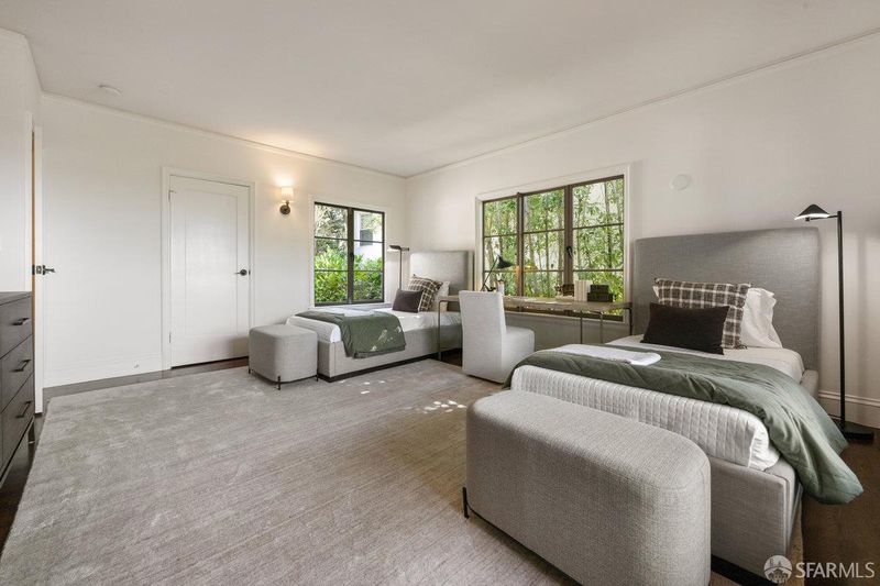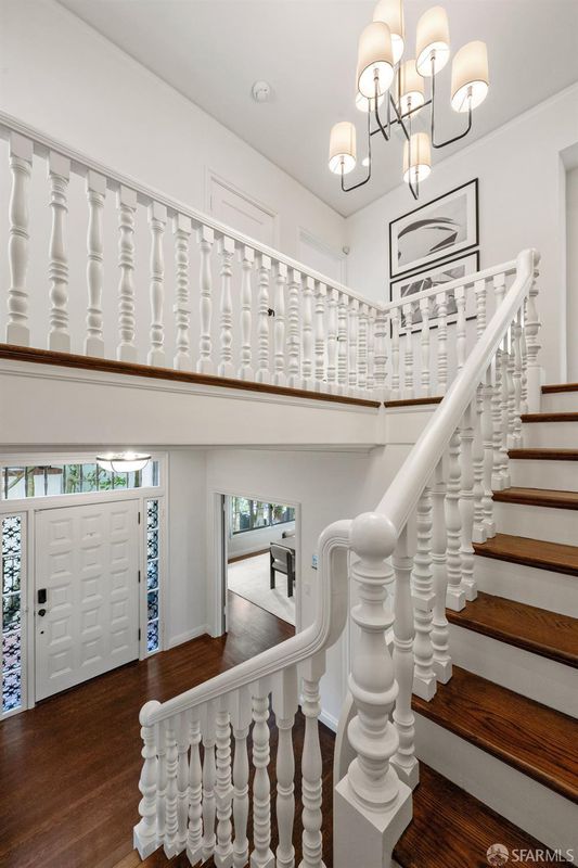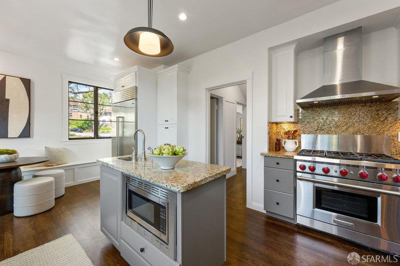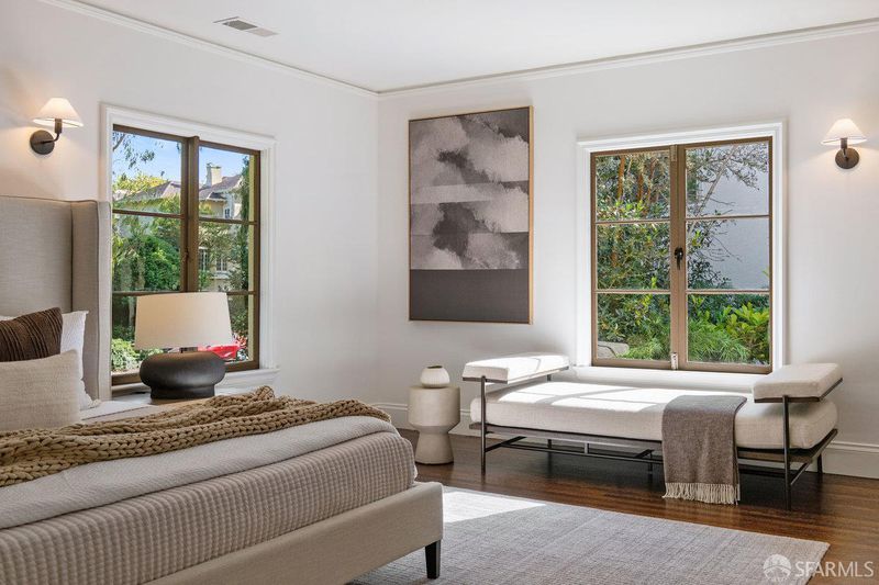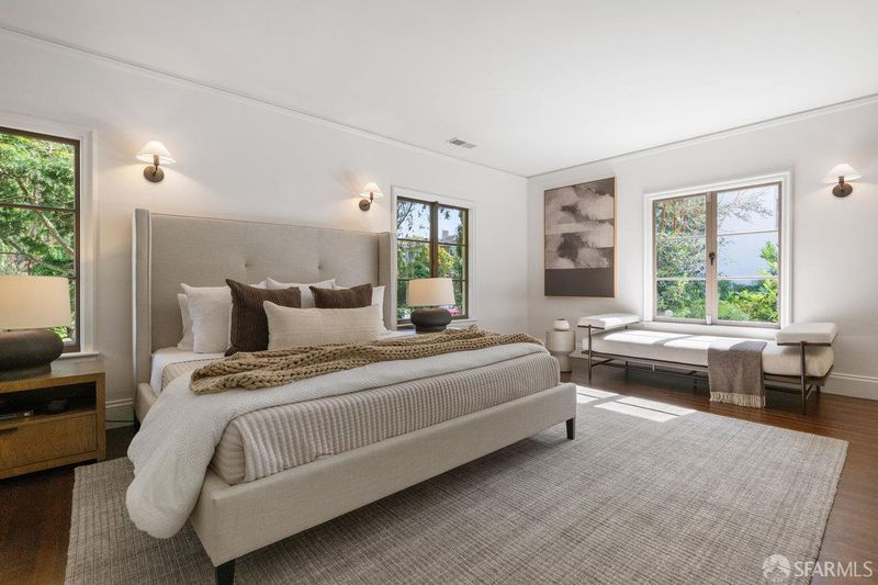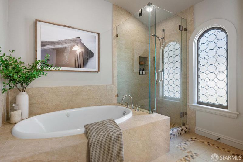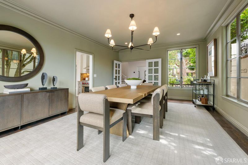 Situated on a fabulous corner lot across from Terrace Green Park and just blocks from West Portal Avenue, this stunning Spanish Mediterranean residence must be seen. Walking up the brick walkway will fill you with a sense of calm as you are surrounded by lush landscaping and mature trees. The grand alcove entry, adorned with wrought-iron details, opens to a large foyer. To the right, a spacious living room with a fireplace; to the left, a formal dining room bathed in natural light from windows on three sides. The thoughtfully designed kitchen features a central island with prep sink, built-in seating with storage, a SubZero refrigerator, and a Wolf range and lots of cabinet space. A bedroom and full bath complete the main level. Upstairs, the expansive primary suite boasts plenty of closet space and a luxurious ensuite bath. Two additional bedrooms, each with private balconies and a full bath, offer comfort and convenience. The lower level, added with permits in 2016, includes a wine cellar, wet bar, laundry room, half bath, and a generous media room. Interior access to the garage enhances convenience. Additional features include a new terracotta roof (2017), backup battery system, EV charger, automatic sprinkler system, driveway gate and so much more.