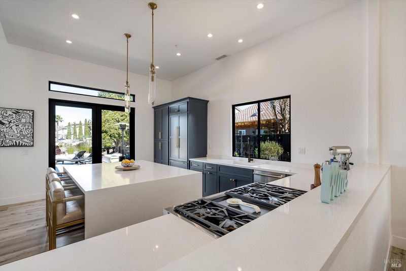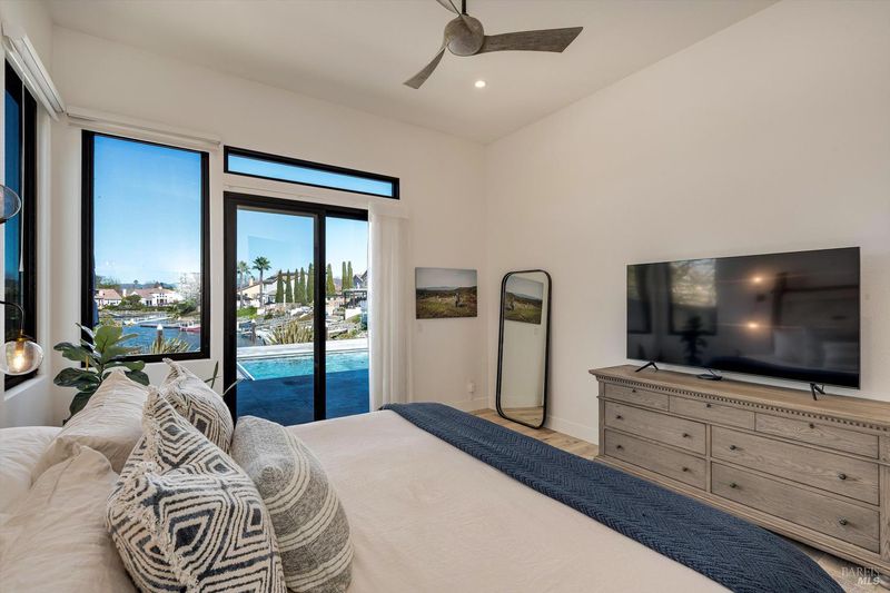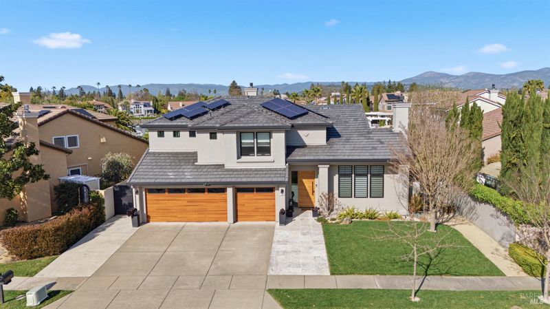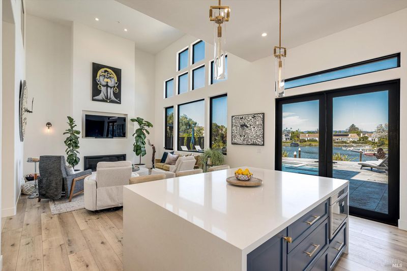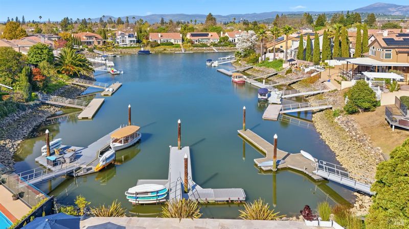 Experience the ultimate Wine Country waterfront lifestyle in this beautifully remodeled residence in the prestigious gated community of Napa Yacht Club in the heart of Napa Valley. Perfectly positioned along the scenic Napa River, the home enjoys a unique and highly desirable waterfront setting with sweeping river and hillside views and unforgettable sunsets that paint the sky in brilliant shades of red and gold. Spanning approximately 2,477 square feet, this extensively remodeled 4-bedroom, 2.5-bath residence showcases the largest and most open two-story floor plan in the community. Thoughtfully reimagined with a clean, modern aesthetic rarely found in the neighborhood, the home features light-filled spaces, crisp lines, and a seamless open-concept design ideal for both everyday living and effortless entertaining. A desirable primary suite on the main level adds comfort and convenience. At the heart of the home is a spectacular chef's kitchen designed to impress, featuring a dramatic waterfall island, premium Thermador appliances, and a commercial-grade rangeperfect for cooking, gathering, and entertaining. Gorgeous flooring, two inviting fireplaces, and expansive living areas enhance the home's refined yet relaxed Wine Country style. The home's outdoor spaces create a true private retreat. The backyard has been completely redesigned to create a private resort-like retreat. Expansive travertine patios, a built-in pool and spa, and beautifully refreshed landscaping provide exceptional spaces for relaxing, entertaining, and enjoying breathtaking sunsets over the river. Additional highlights include owned solar and an impressive three-car garage. Located within the gated Napa Yacht Club community along the Napa River, residents enjoy boat dock access and the unique lifestyle of being moments from boating to downtown Napa for lunch or dinner, paddleboarding, and scenic waterfront walks. Combining modern design, luxurious outdoor living, and one of Napa's most desirable riverfront communities, this turnkey home offers a truly exceptional Wine Country lifestyle