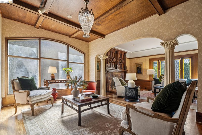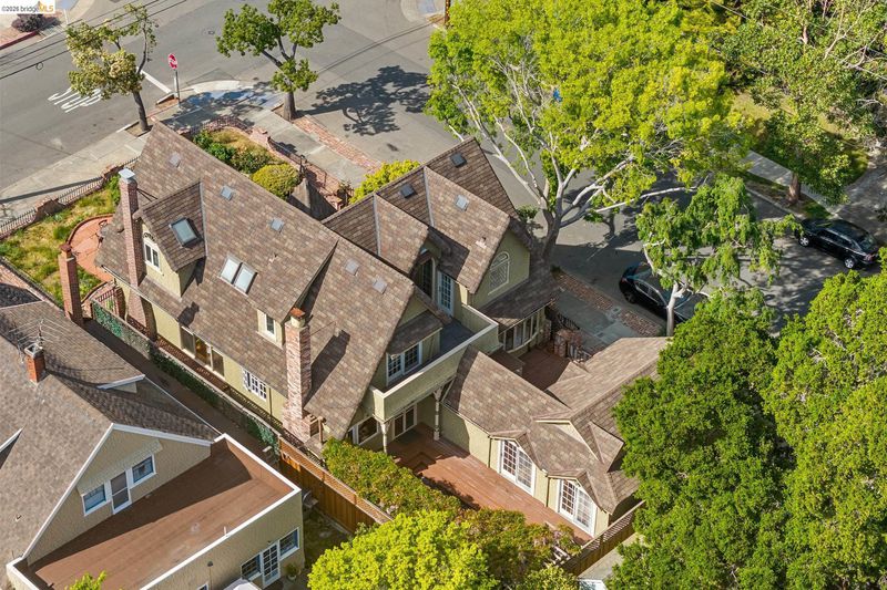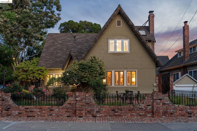 There are times when a property exudes so much character and charm that you are compelled to explore it. This is one such home and it truly delights the senses. Welcome to 824 Paru Street, an enchanting 1910 Storybook home in Alameda’s coveted Gold Coast—just one block to the lagoon and Franklin Park/Franklin Elementary. Behind a brick garden wall and gated entry, this whimsical 3,523 SqFt home showcases steep gables, sweeping curved rooflines, arched doorways, stained glass, and classic English cottage charm—a rare and beautifully preserved example of early 20th century design. Inside, the living room is a true centerpiece with rich wood paneling, leaded glass windows, and a striking fireplace with custom millwork, while classical wainscoting lines the halls leading to a dramatic second-floor landing beneath the steep roofline. Upstairs, new red oak floors complement three primary bedrooms, each with an ensuite bath (2.5 total), while original white oak floors in the living and dining rooms have been thoughtfully restored. The backyard patio invites quiet moments under a wisteria-draped gazebo. Public record notes five bedrooms; the lower level lives as a spacious family room with copper fireplace and a refined library or office with adjacent full bath. This home is truly a gem!