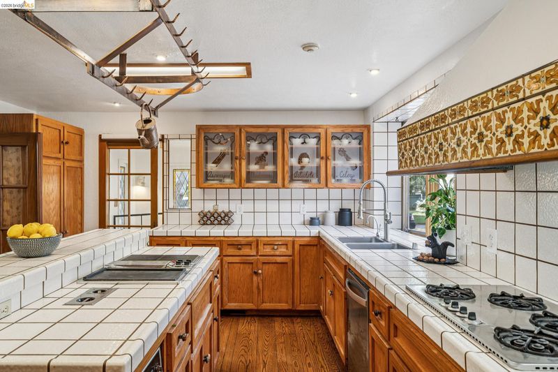 - Dishwasher, Electric Range, Refrigerator, Gas Water Heater, Tile Counters, Eat-in Kitchen, Electric Range/Cooktop, Kitchen Island
