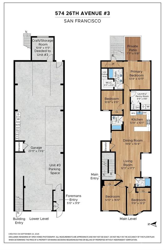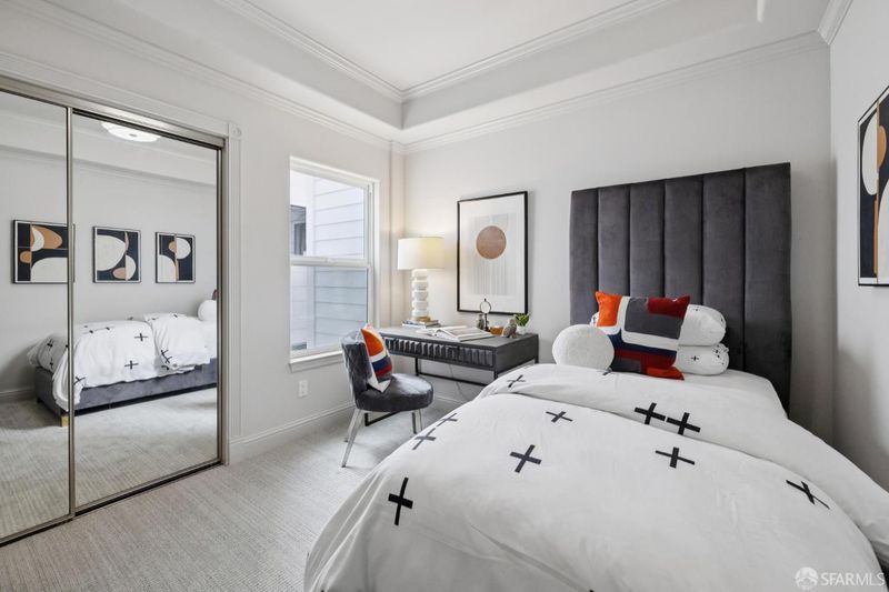 Checking all the boxes, this grand 4-bedroom, 3-bathroom condo embodies both grace and functionality. Situated in a boutique 4-unit building, 574 26th Avenue, Unit #3 offers generous scale and a thoughtful separation of spaces, designed for privacy, comfort, and effortless living. Inside, refinished hardwood floors flow through the common areas, while brand-new plush carpeting warms each bedroom. The chef's kitchen, anchored by a six-burner gas range, invites gatherings of large & small, complemented by abundant cabinetry and a massive in-unit laundry room that easily doubles as a prize-worthy pantry. Additional luxuries include a deeded bonus craft/storage room (or home office!), 1-car parking, & semi-private elevator access from the garage directly into the unit, shared with only 1 other residence. Step outside to a serene private patio off the primary suite with eastern city views, or descend the rear staircase to the shared backyard, a quiet retreat tucked behind the home. Just beyond your door awaits celebrated neighborhood favorites; Fiorella, Aziza, Violet's, and Royal Coffee House, along with Richmond Playground, Baker Beach, China Beach, and the Legion of Honor, where art, music, & ocean vistas converge in timeless San Francisco beauty. A rare offering not to be missed!