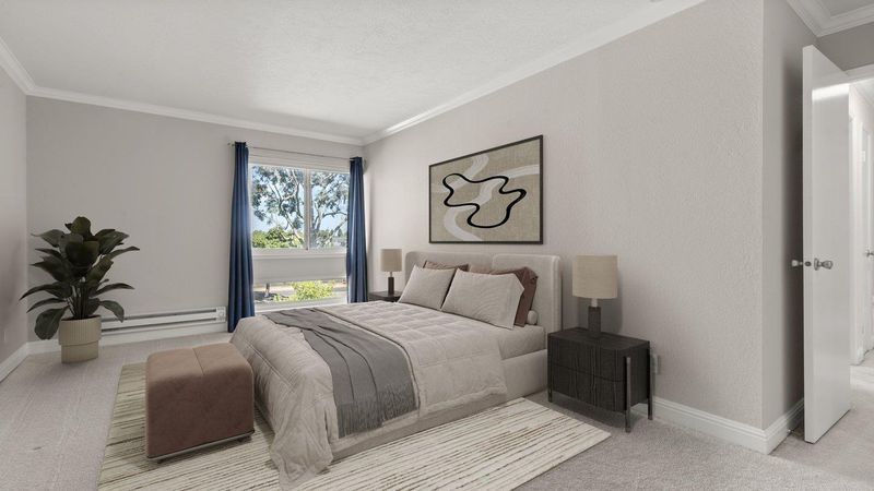 Experience the pinnacle of top-floor living with this fully updated 2-bedroom, 2-bathroom unit in Foster City. The modern kitchen boasts quartz countertops, stainless steel appliances, and a wine cooler. Enhanced with crown molding and recessed lighting, the expansive living room seamlessly connects to a sunny dining room that opens onto a private balcony. The home features updated bathrooms and a spacious primary suite with a walk-in closet. Additional amenities include an in-unit washer and dryer, a breakfast nook, one assigned parking spot, private inside storage room and ample guest parking. Residents enjoy a lifestyle of leisure with community amenities such as a pool, spa, waterfront clubhouse, and access to paddle boarding and kayaking. With nearby trails for walking or biking along the Bay, as well as proximity to top rated schools, parks, shopping centers, and dining options, this home embodies the best of Foster City living.