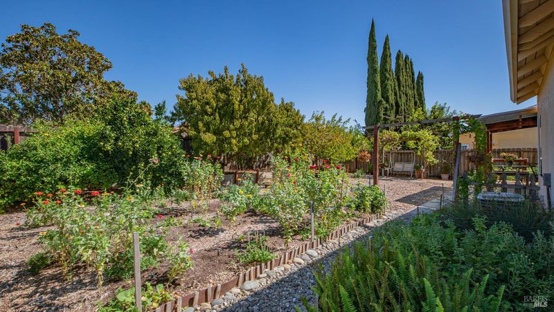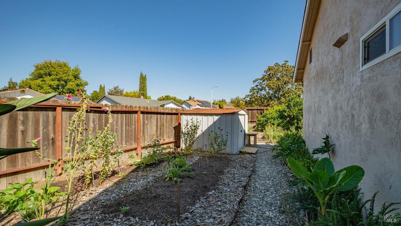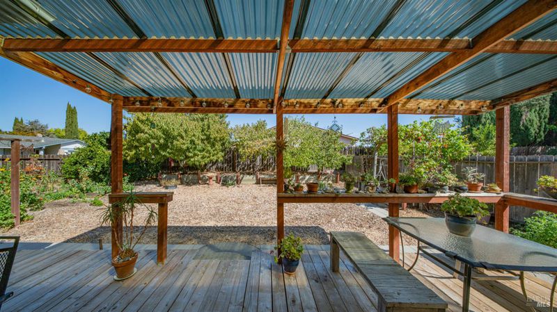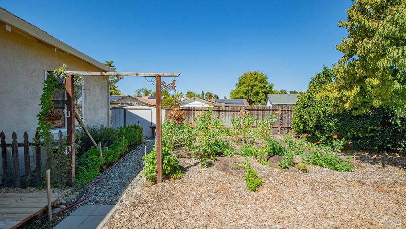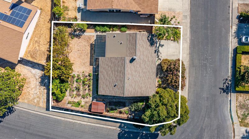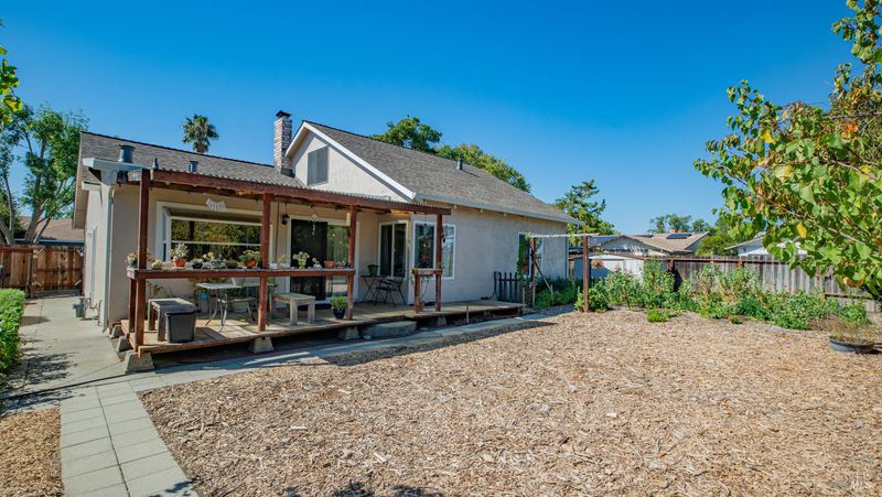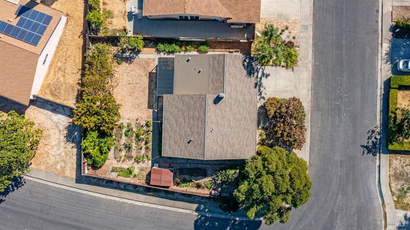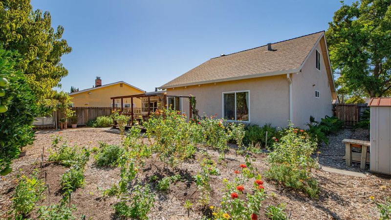 Pride of ownership shines in this charming home, ideally situated on a spacious corner lot in a well-established neighborhood. Easy freeway access. Close to shopping, schools and parks. Featuring 4 bedrooms and 2 full bathrooms with plenty of living space. This home offers both comfort and potential. Enjoy fresh exterior and interior paint, and a warm, welcoming living room with a cozy fireplace that flows into a functional kitchen and open family room/dining area with vaulted ceilings - perfect for everyday living or entertaining. The versatile layout includes 2 bedrooms and 1 full bathroom on the main level, with 2 additional bedrooms and a second bathroom upstairs-ideal for multi-generational living or guest space. Step outside to a large backyard complete with a deck for entertaining, dedicated garden spaces, surrounded by fruit trees including peach, apricot, pear, nectarine, orange, Meyer lemon, grapevines, and a vibrant and colorful landscaping throughout the year - a true gardener's delight. Room for an ADU or RV parking. Additional features include a 2-car garage with ample cabinets and shelving for storage, and a shed for all your outdoor tools. Move right in and update at your own pace - endless possibilities.