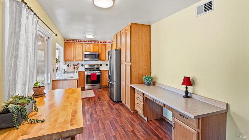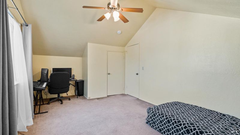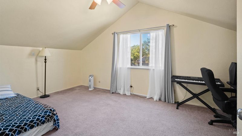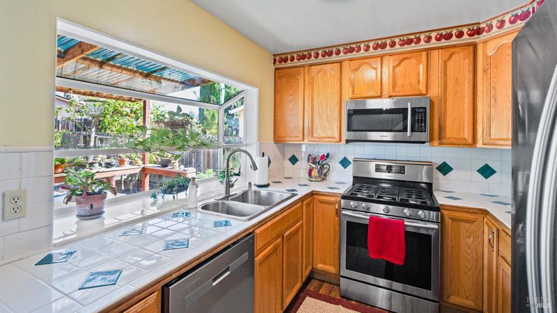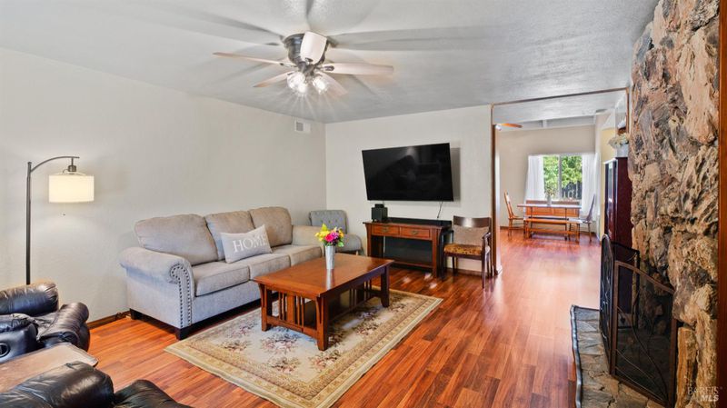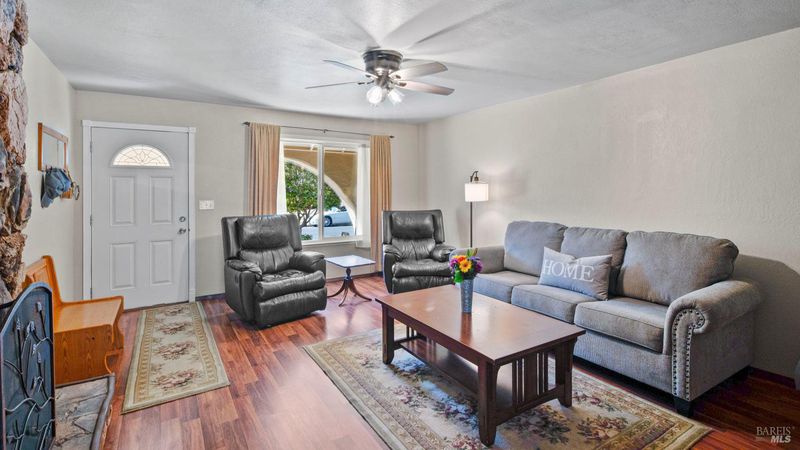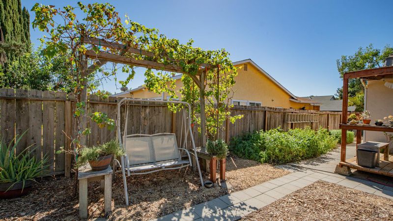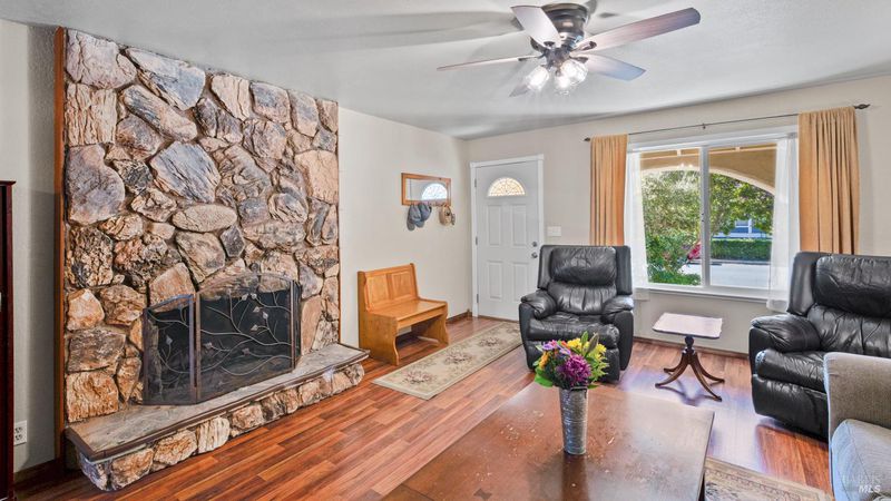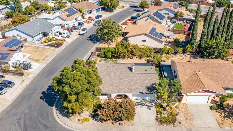Pride of ownership shines in this charming home, ideally situated on a spacious corner lot in a well-established neighborhood. Easy freeway access. Close to shopping, schools and parks. Featuring 4 bedrooms and 2 full bathrooms with plenty of living space. This home offers both comfort and potential. Enjoy fresh exterior and interior paint, and a warm, welcoming living room with a cozy fireplace that flows into a functional kitchen and open family room/dining area with vaulted ceilings - perfect for everyday living or entertaining. The versatile layout includes 2 bedrooms and 1 full bathroom on the main level, with 2 additional bedrooms and a second bathroom upstairs-ideal for multi-generational living or guest space. Step outside to a large backyard complete with a deck for entertaining, dedicated garden spaces, surrounded by fruit trees including peach, apricot, pear, nectarine, orange, Meyer lemon, grapevines, and a vibrant and colorful landscaping throughout the year - a true gardener's delight. Room for an ADU or RV parking. Additional features include a 2-car garage with ample cabinets and shelving for storage, and a shed for all your outdoor tools. Move right in and update at your own pace - endless possibilities.