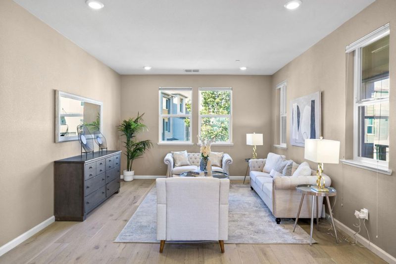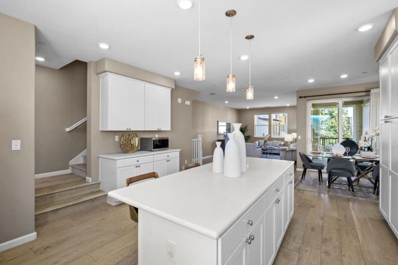 Rarely available corner/end-unit townhome offering exceptional privacy, abundant natural light, and a highly functional layout in a well-maintained, centrally located Milpitas community. This beautifully upgraded residence stands out for its modern finishes and thoughtful design. This thoughtfully designed home features a bedroom and full bath on the first level, ideal for guests, extended family, or a private home office. The main living area showcases a spacious open-concept layout anchored by a huge gourmet kitchen with an impressive 7-foot island, perfect for entertaining and everyday living. Modern enhancements include a whole-home water filtration system, multi-zone HVAC with Nest thermostats on each level, and numerous quality upgrades throughout. Upstairs, the luxurious primary suite offers a designer accent wall, expansive walk-in closet with custom built-ins, and a generously sized spa-like bathroom. Garage pre-wired for a 220V EV charger. Ideally located near neighborhood parks, shopping, dining, and top-rated schools. Easy access to major freeways including 880, 680, and 237. HOA amenities including ample guest parking, two parks, BBQ areas, and a children's play area enhancing everyday living. A perfect combination of location, layout, and lifestyle.